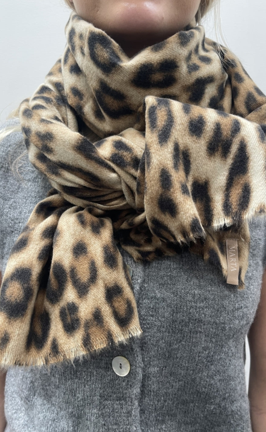 Fint tørklæde fra Marta Du Chateau i leoprint.