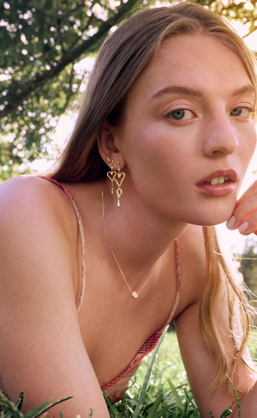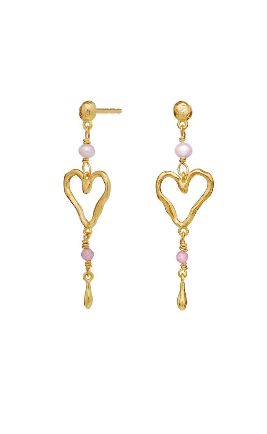 Disse øreringe er formet som et hjerte og har en masse perler.