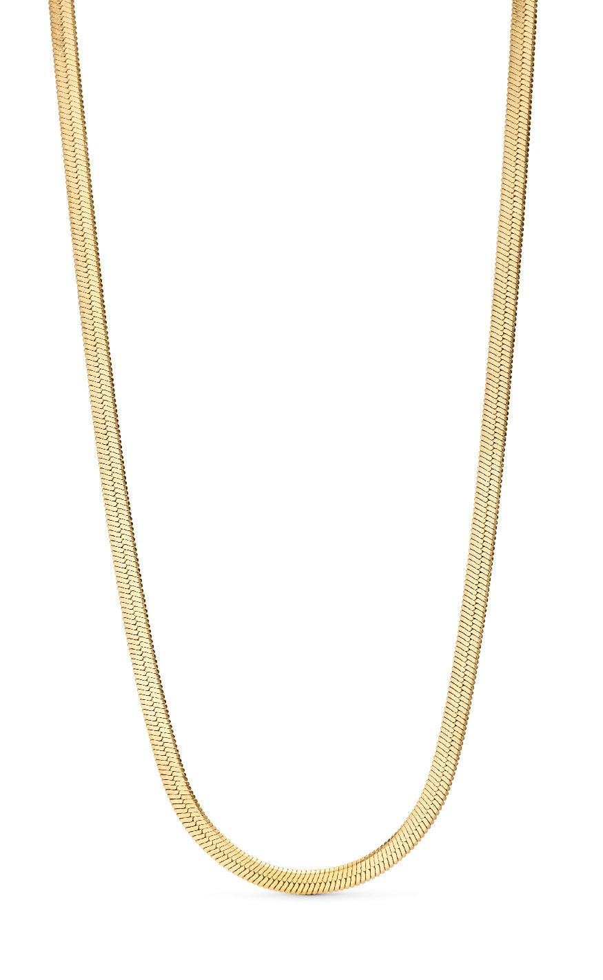 Smuk halskæde fra Smykkeli Copenhagen i guld med en flad overflade. Halskæden har et stilrent look, der pifter ethvert outfit op.
