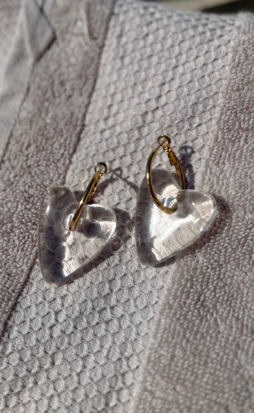 Smykkeli Copenhagen Øreringe - Heartflame - Gold / Clear