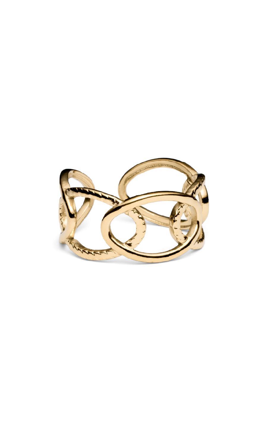 Eksklusiv ring fra Smykkeli Copenhagen i guld formet som kæder. Hver 2. kæde har et hamret design, som skaber en virkelig flot effekt.