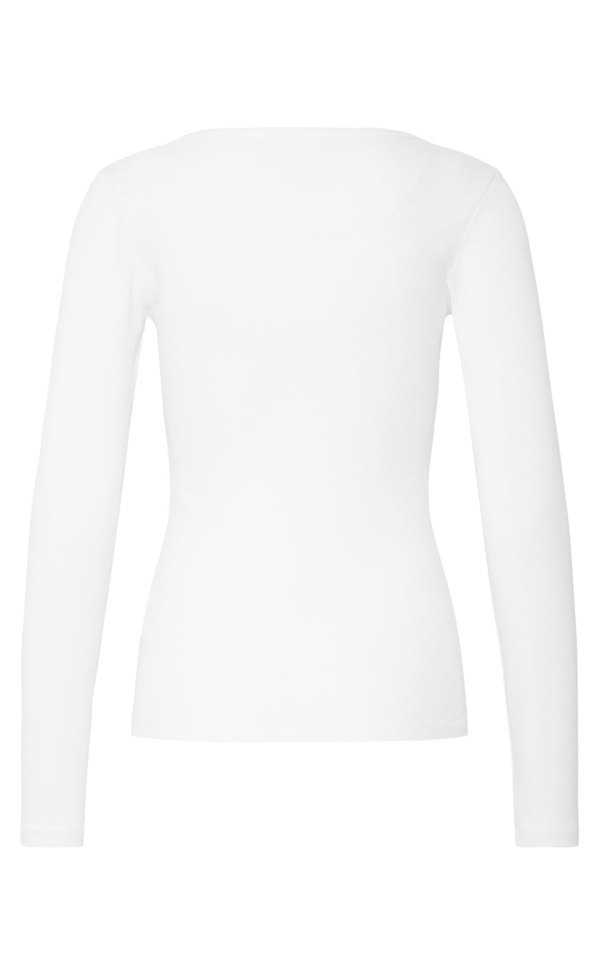 Blusen har en tætsiddende pasform er og i en ribbet kvalitet.