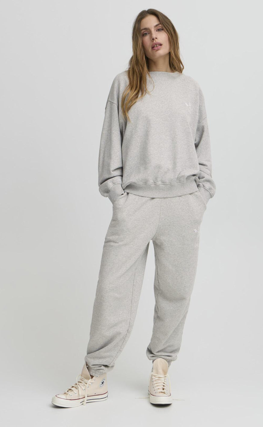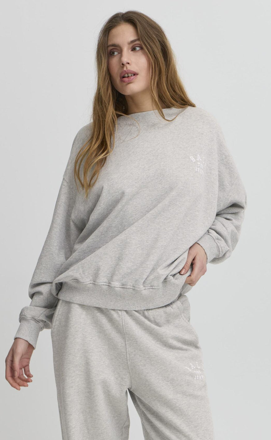 Blød og casual sweatshirt fra BALL Original i en grå nuance med lille logo‑print på brystet.