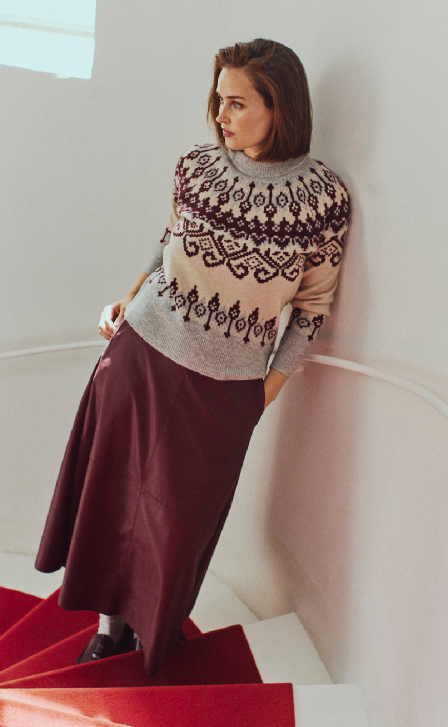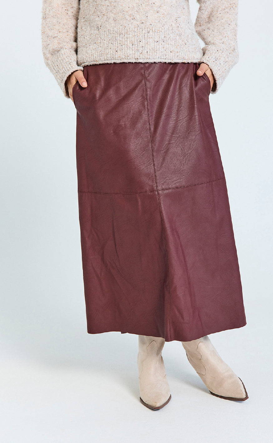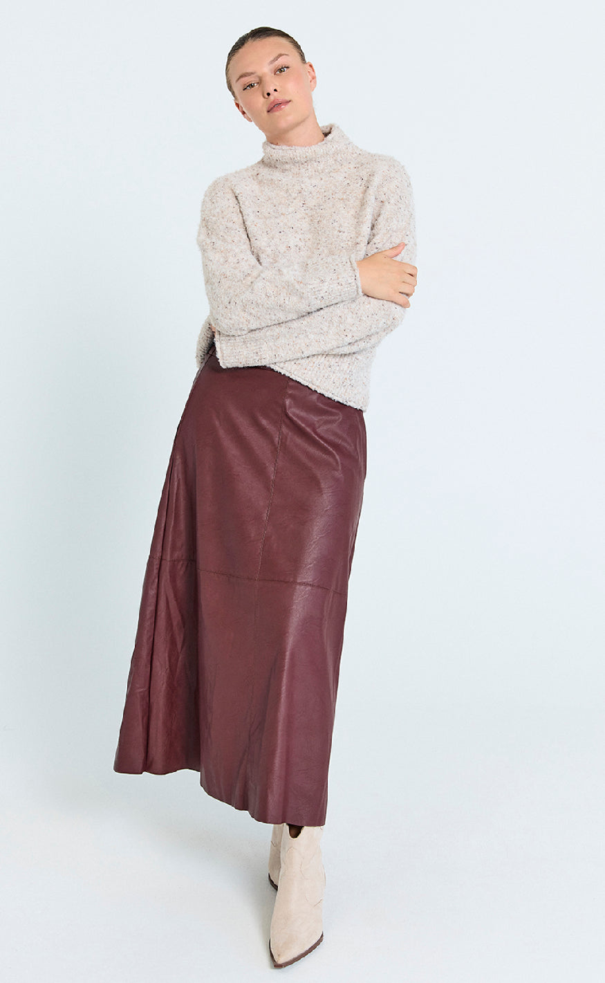 Nederdelen er lang og enkel i modellen med elastik bagpå.