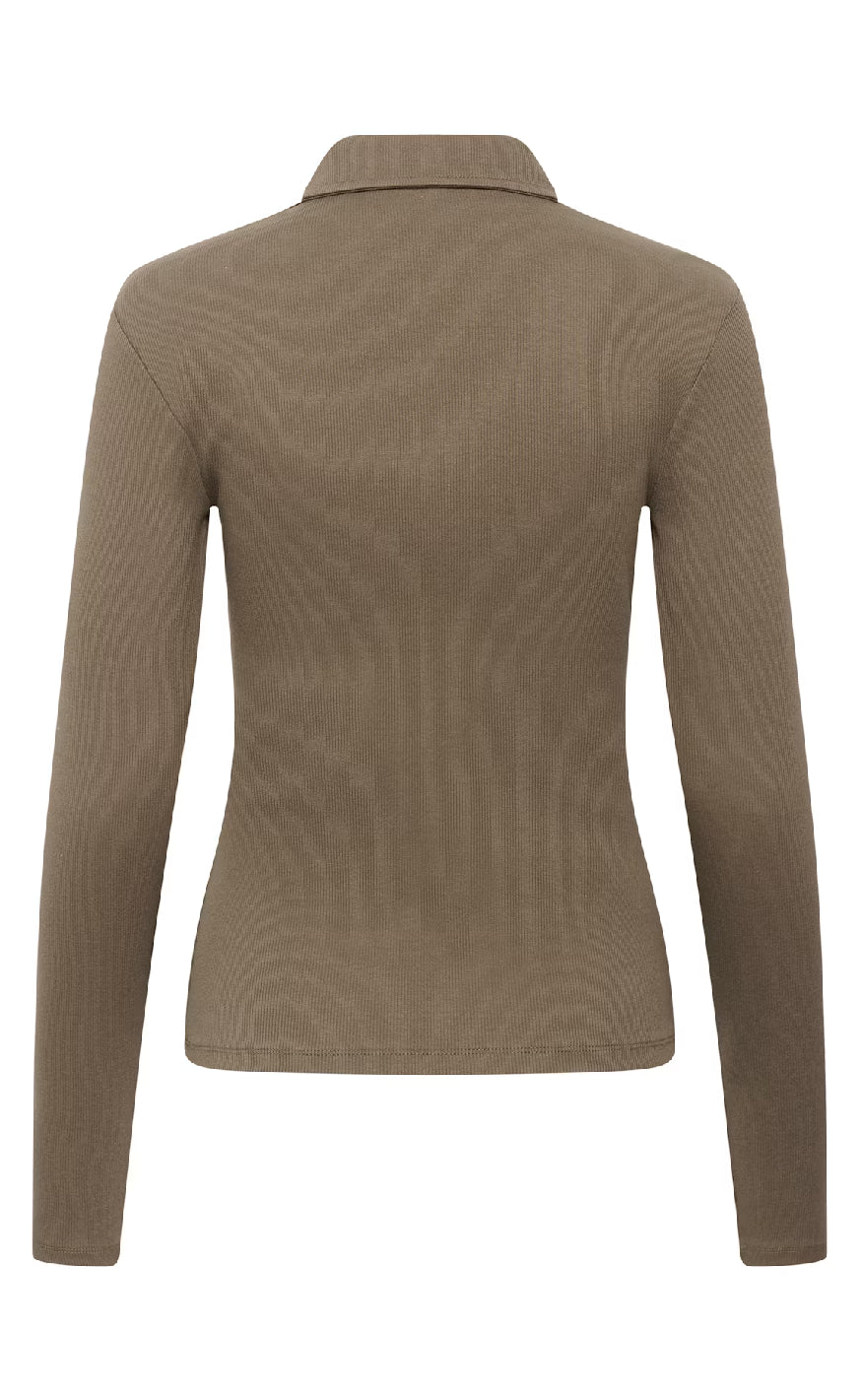 Ribstrikket skjorte fra Gestuz i en mørk brun farve med klassisk krave.