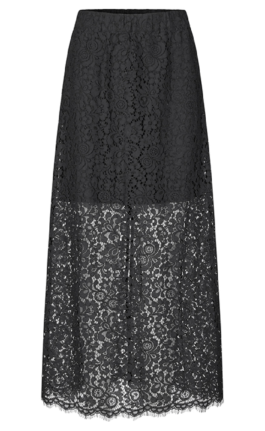 Maxi nederdel fra Global Funk i sort i et flot blondemateriale.