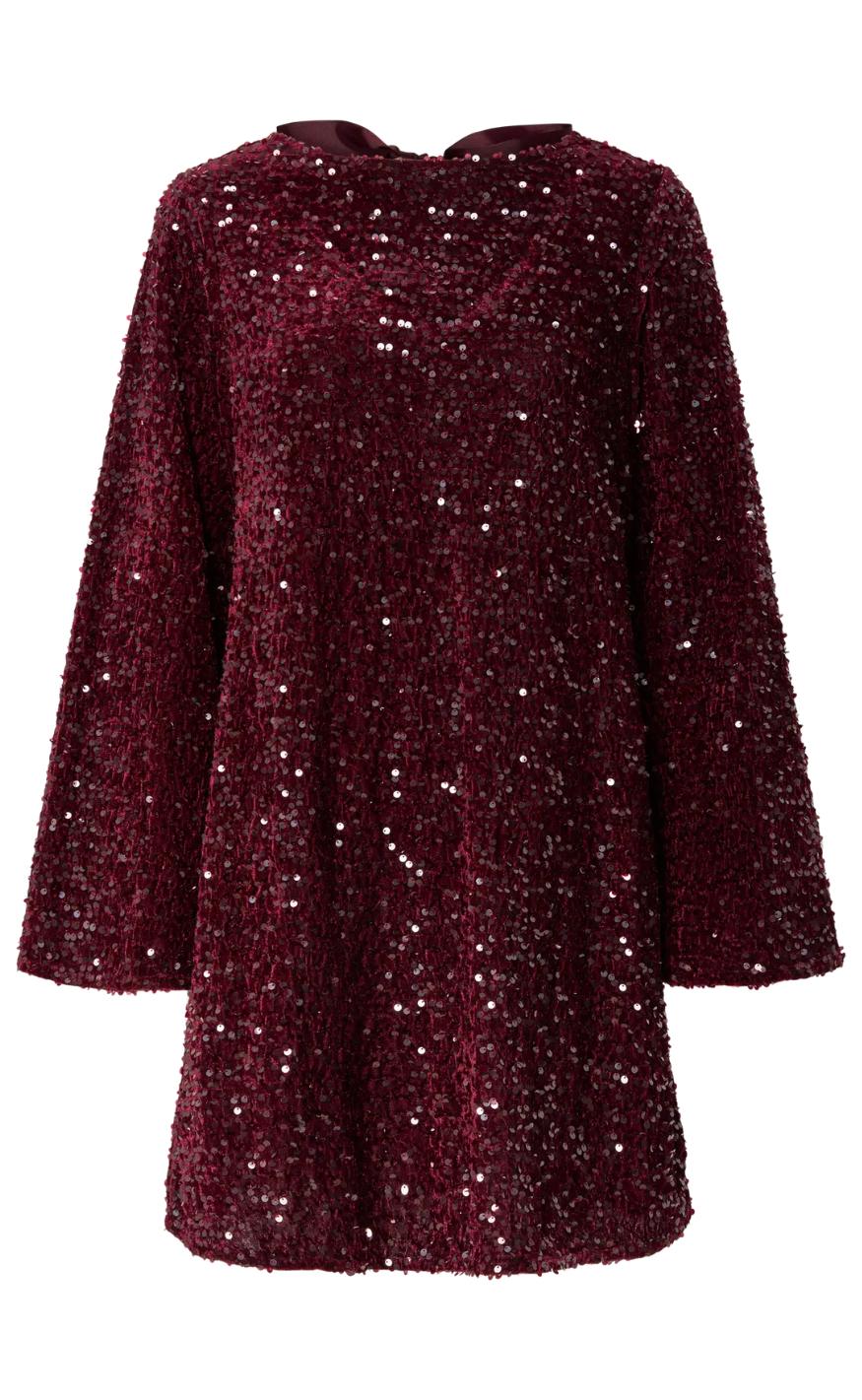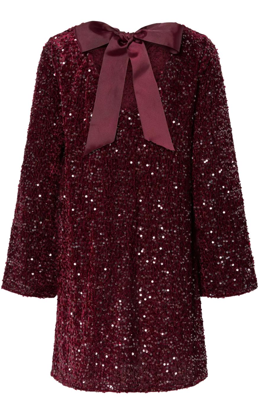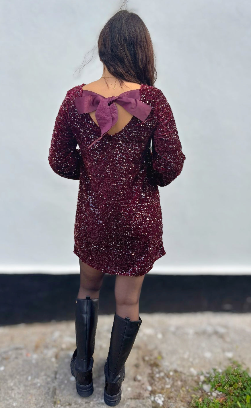Kjolen går til omkring knæet, og har den smukkeste sløjfe på rygge.