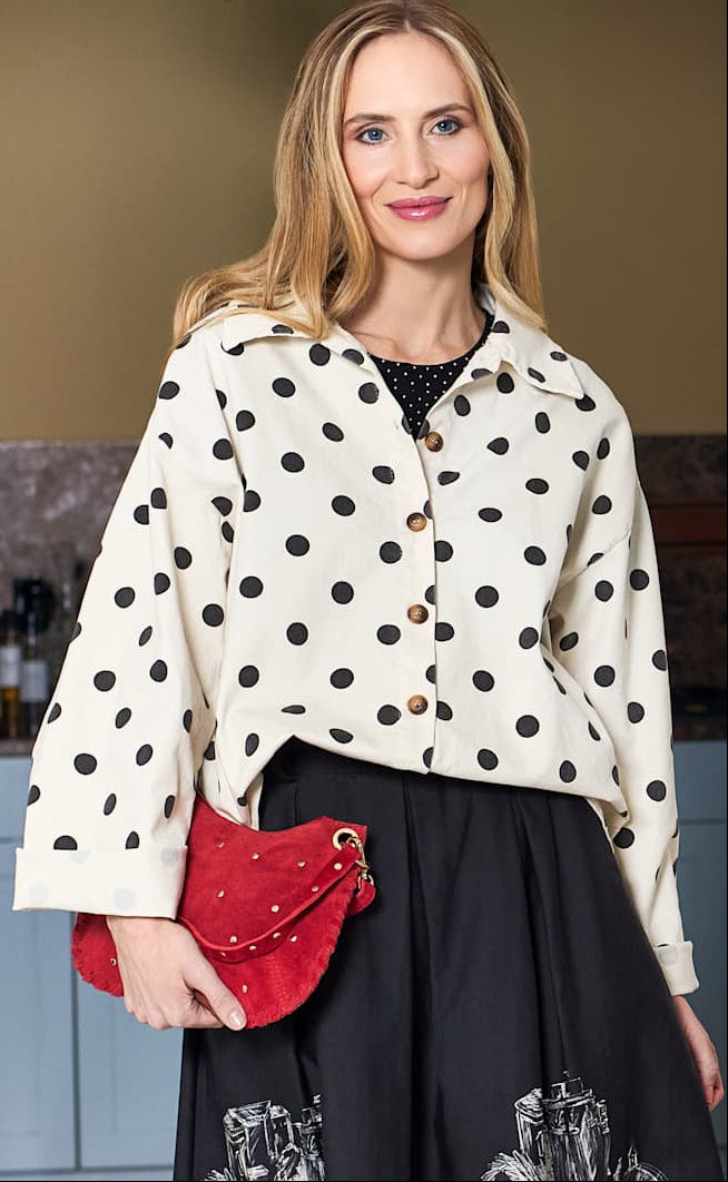 Let jakke fra Black Colour i en lys cremefarvet nuance med store sorte polkaprikker.