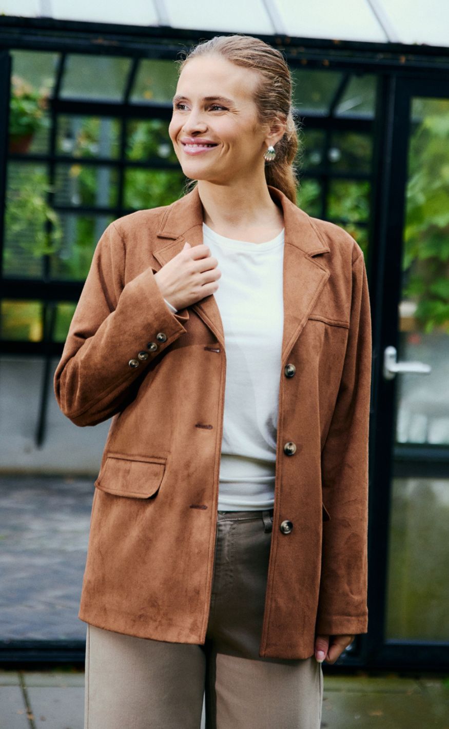 Den er nem at style både til hverdag og mere pæne outfits og passer godt sammen med både jeans, bukser og kjoler, alt efter hvilket udtryk du ønsker.