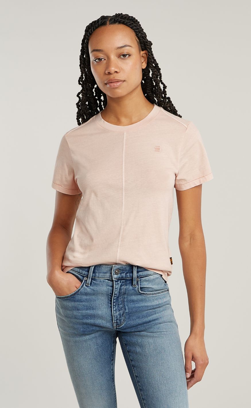 Klassisk og alsidig T-shirt fra G-STAR i en afdæmpet pink nuance. T-shirten har korte ærmer, rund hals og en dekorativ midtersøm foran, der tilfører et råt og moderne twist til det enkle design.