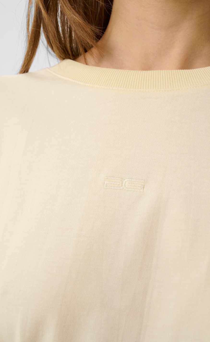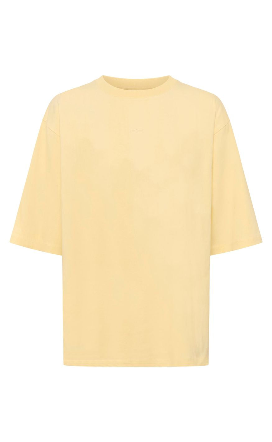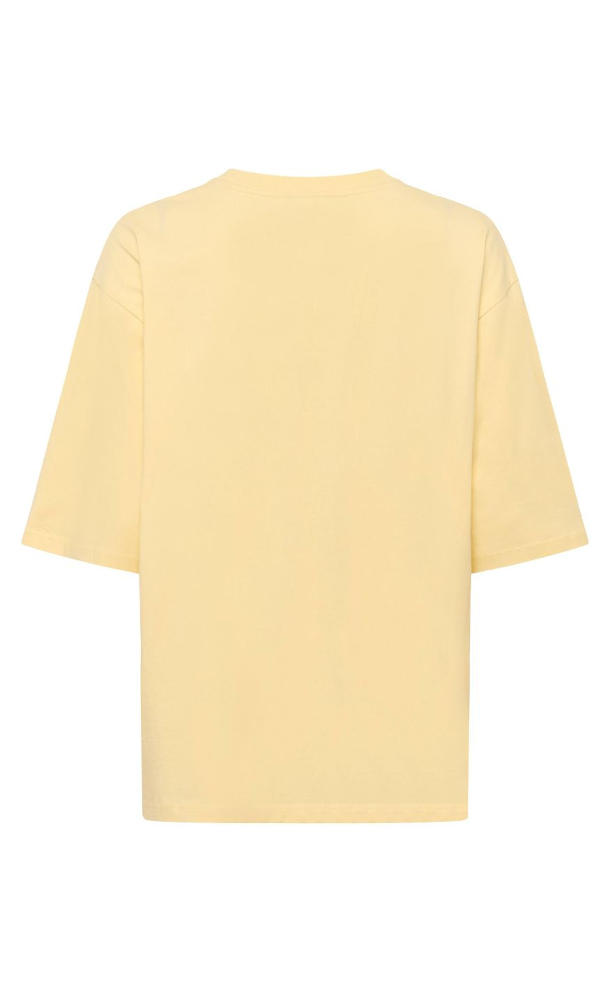 Enkel t-shirt fra Gestuz i en klar gul farve med et rent og afslappet udtryk. Den runde halsudskæring og de korte ærmer giver et klassisk snit med en let oversized pasform.