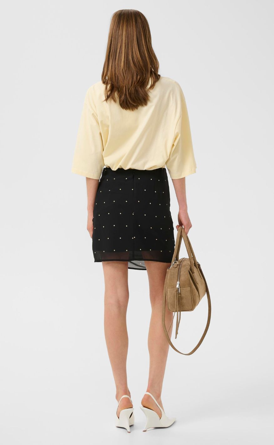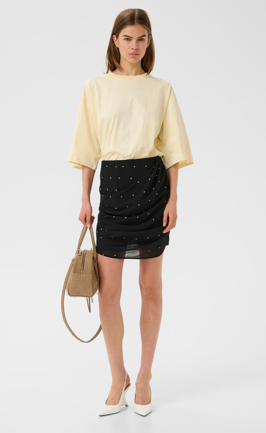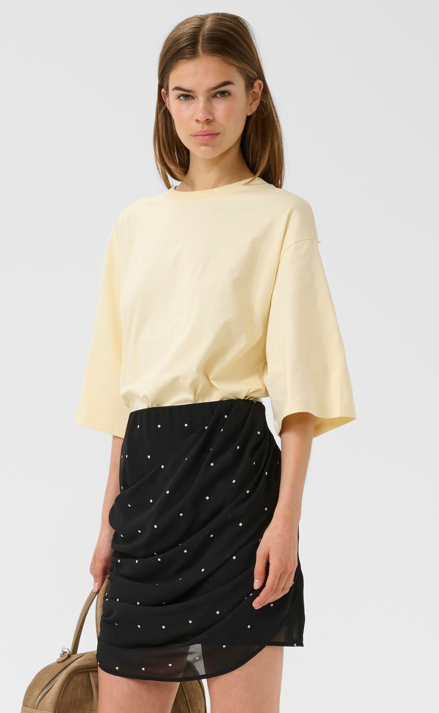 Enkel t-shirt fra Gestuz i en klar gul farve med et rent og afslappet udtryk. Den runde halsudskæring og de korte ærmer giver et klassisk snit med en let oversized pasform.