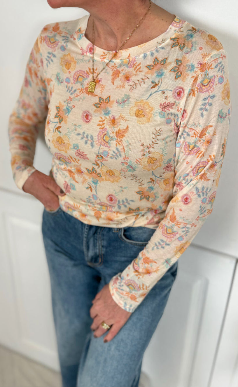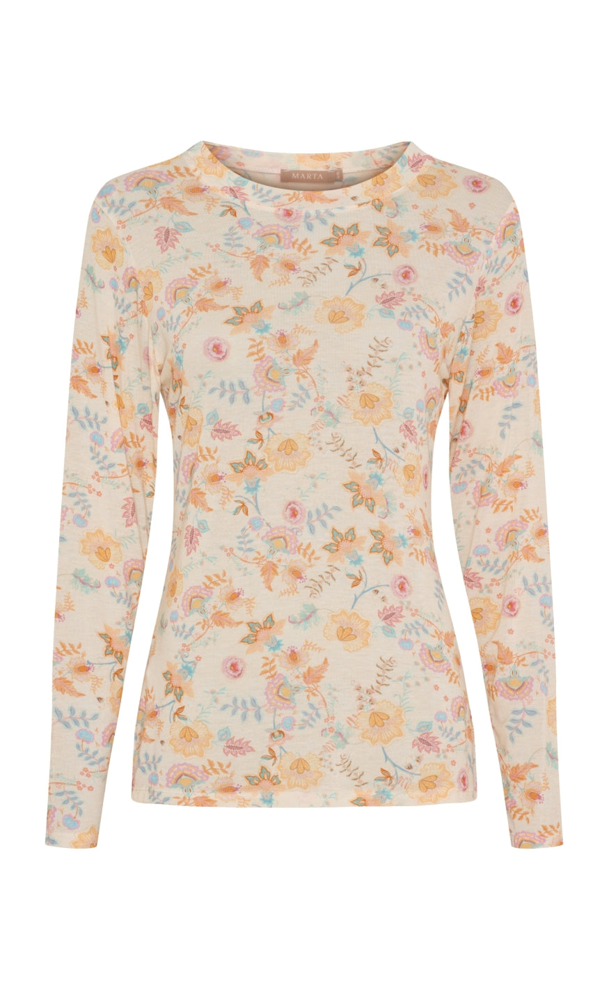 Let og feminin bluse fra Marta Du Chateau i en smuk lyseblå nuance med et romantisk blomsterprint i pasteltoner.