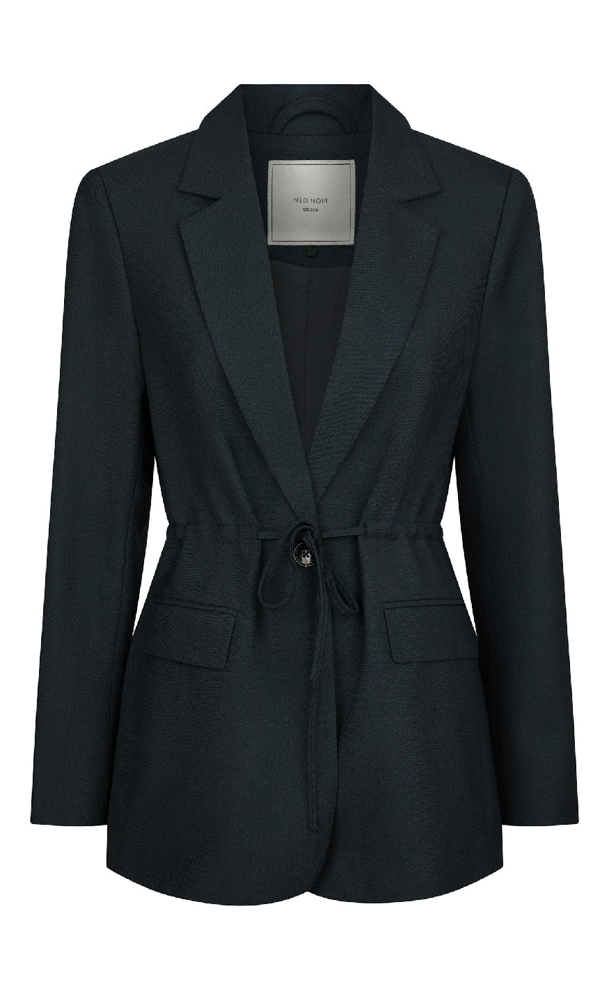 Blazeren har bindebånd og knap foran samt lommer.