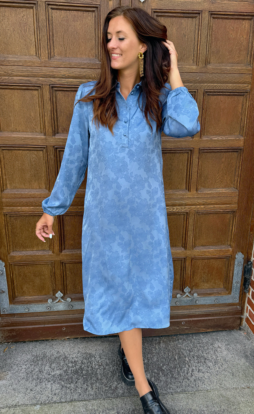 INA Copenhagen Kjole - Celeste LS - Blue Flower