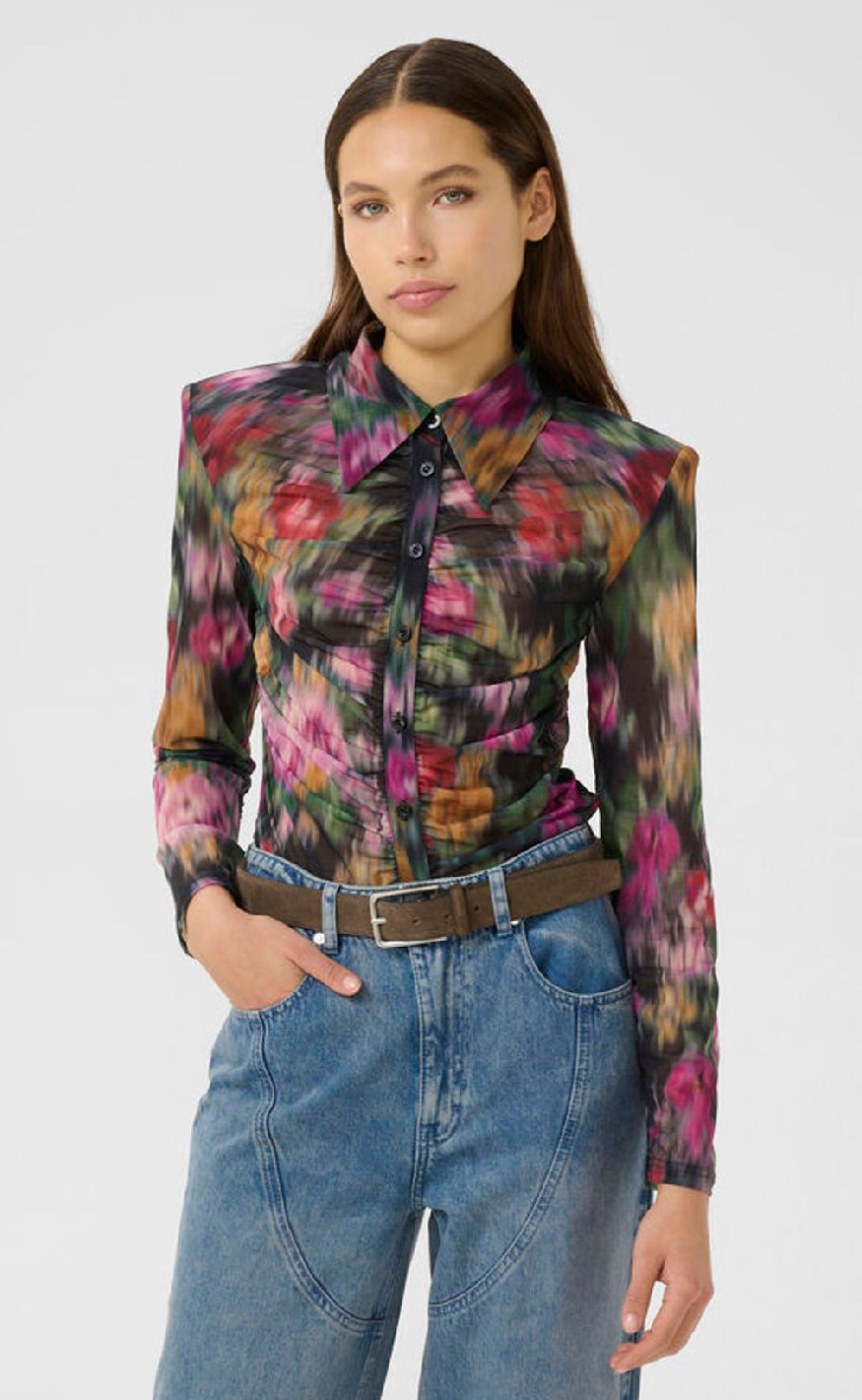 Blomstret skjorte fra Gestuz i en mesh kvalitet.
