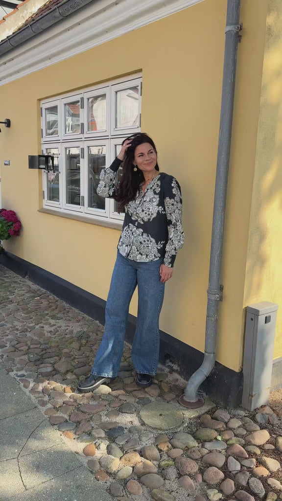 Say INA Copenhagen Skjorte - Hanna - Black W. Flowers