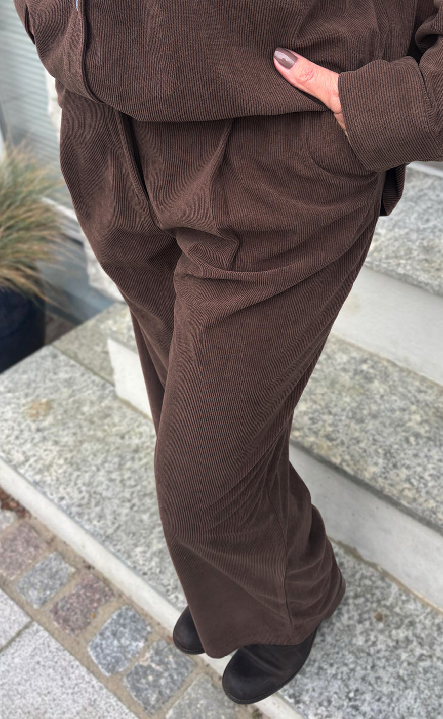 Bukser fra Say INA Copenhagen i mørkebrun fløjl.