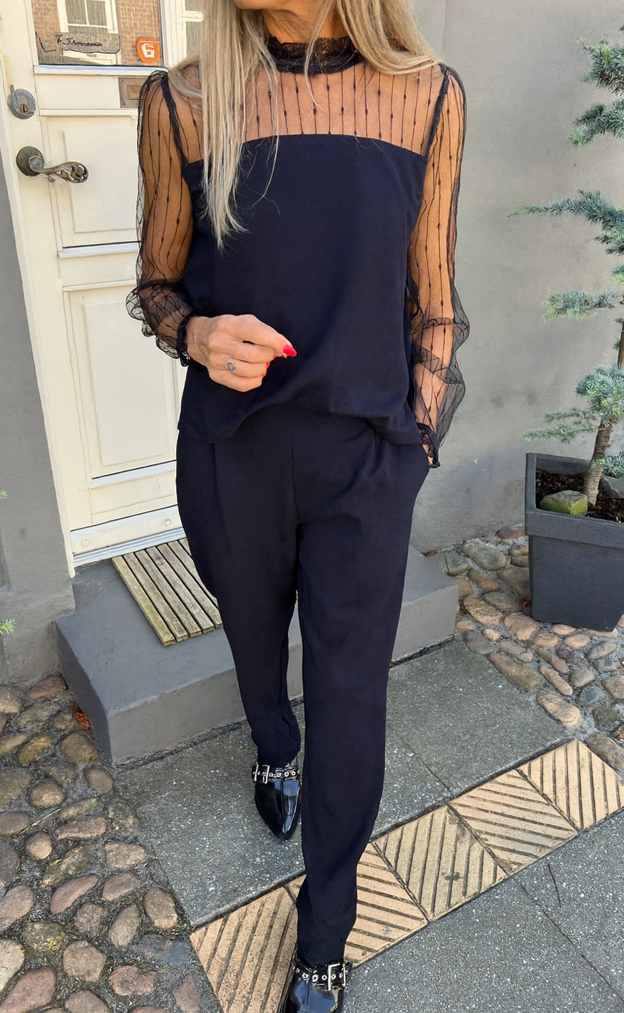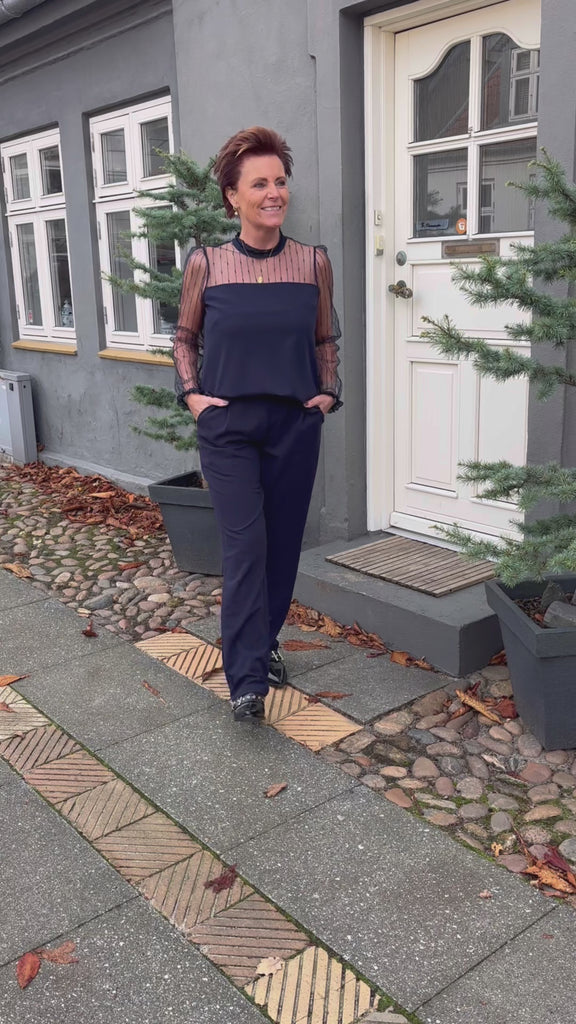 Virkelig smuk og eksklusiv buksedragt fra INA Copenhagen i navy blå.