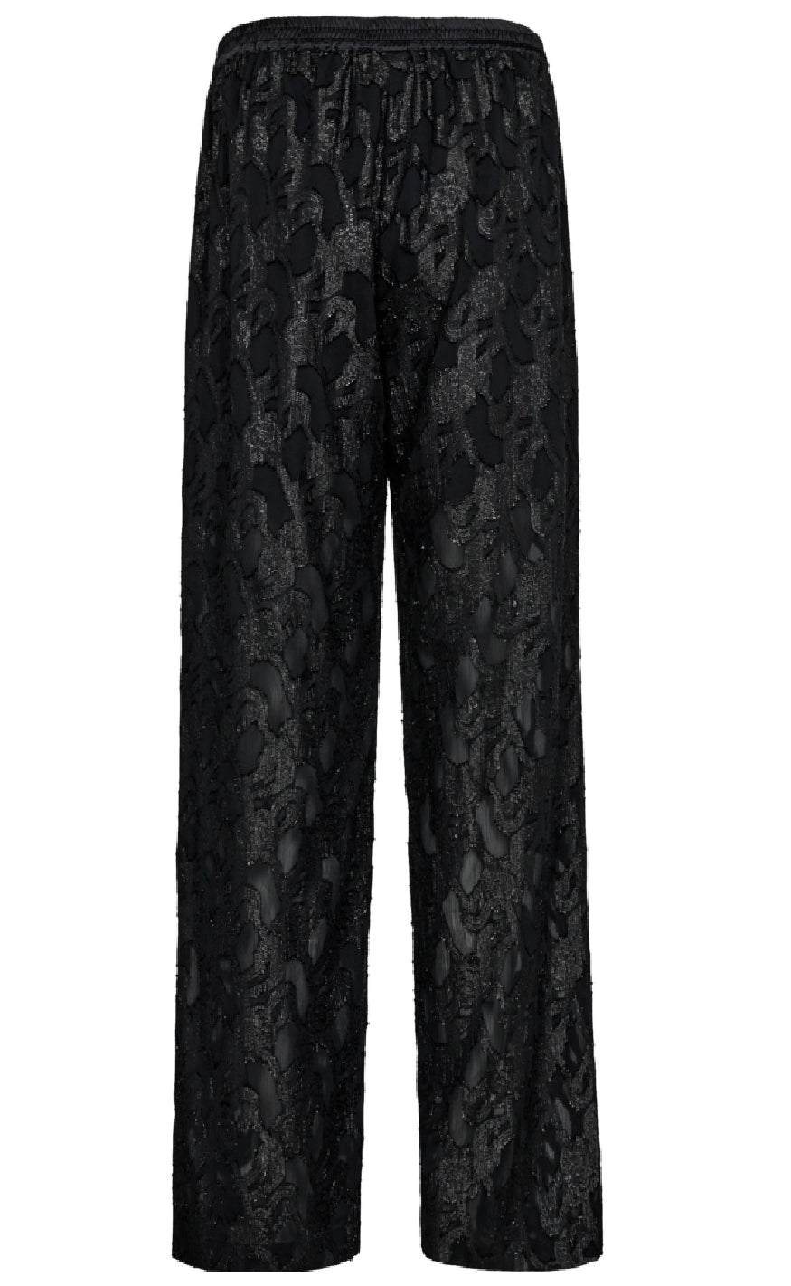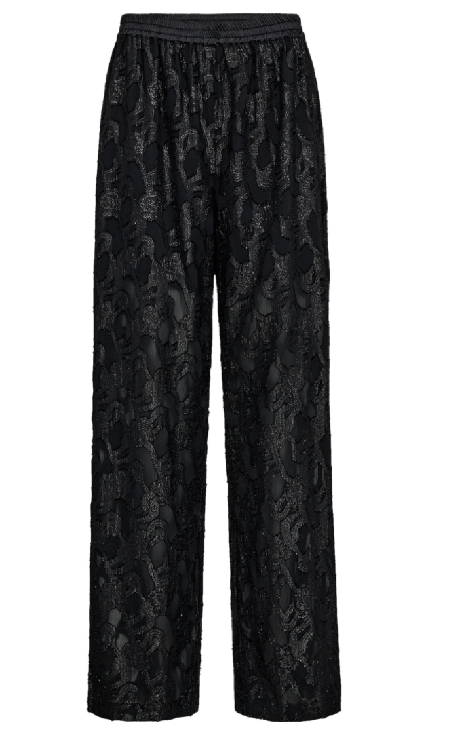 Sorte bukser fra Gossia med elegant mønster og løs pasform – et sofistikeret valg til både fest og hverdagslook.