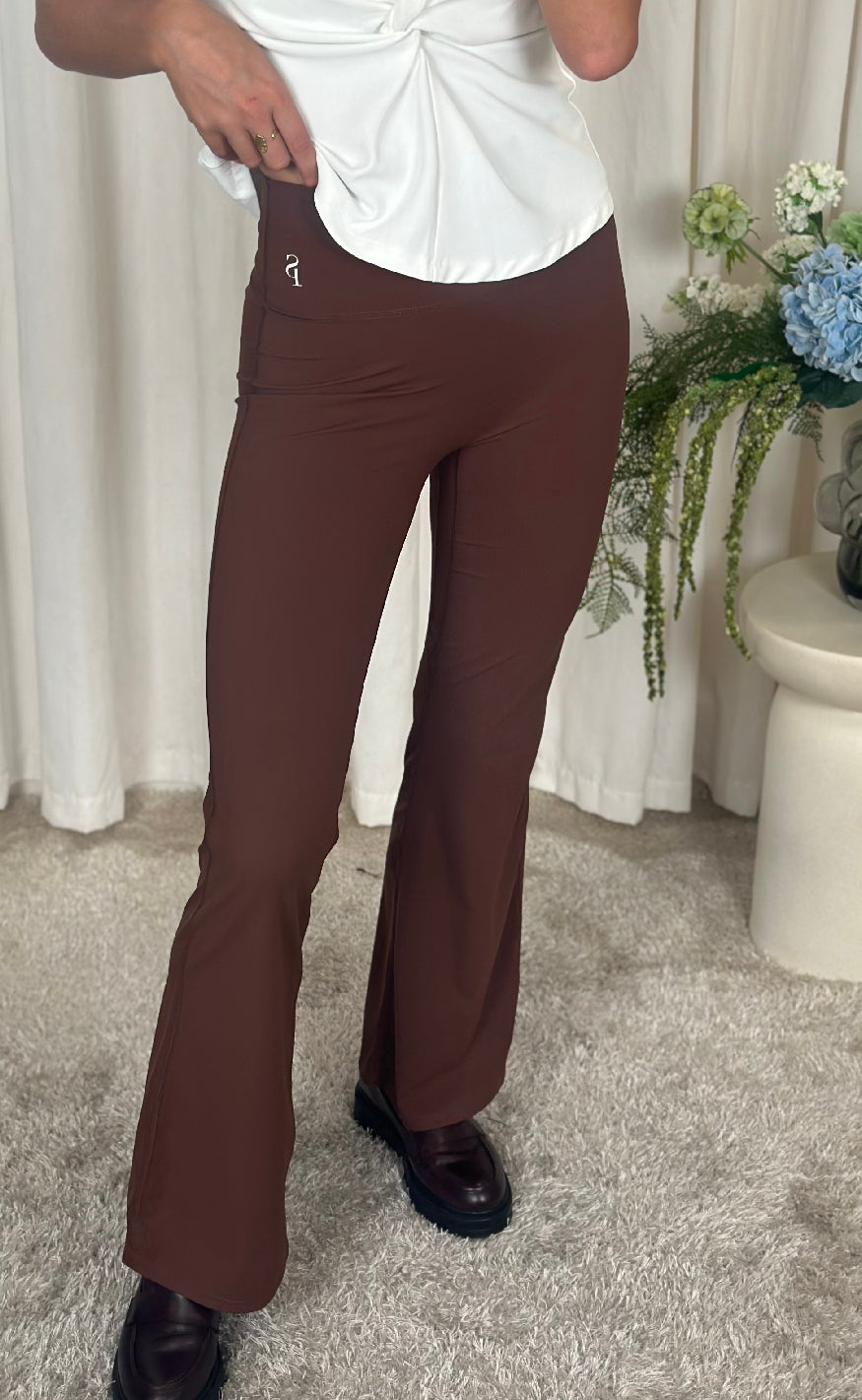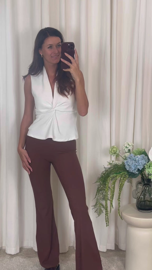 LAY-PA er et par moderne bukser fra Sisters Point med tætsiddende pasform, høj talje og elegant bootcut-snit.