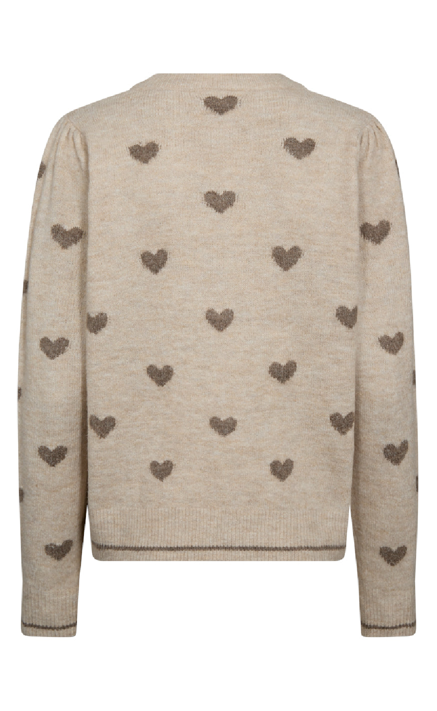 Dejlig cardigan fra Freequent i brun, med mørkebrun hjerter.