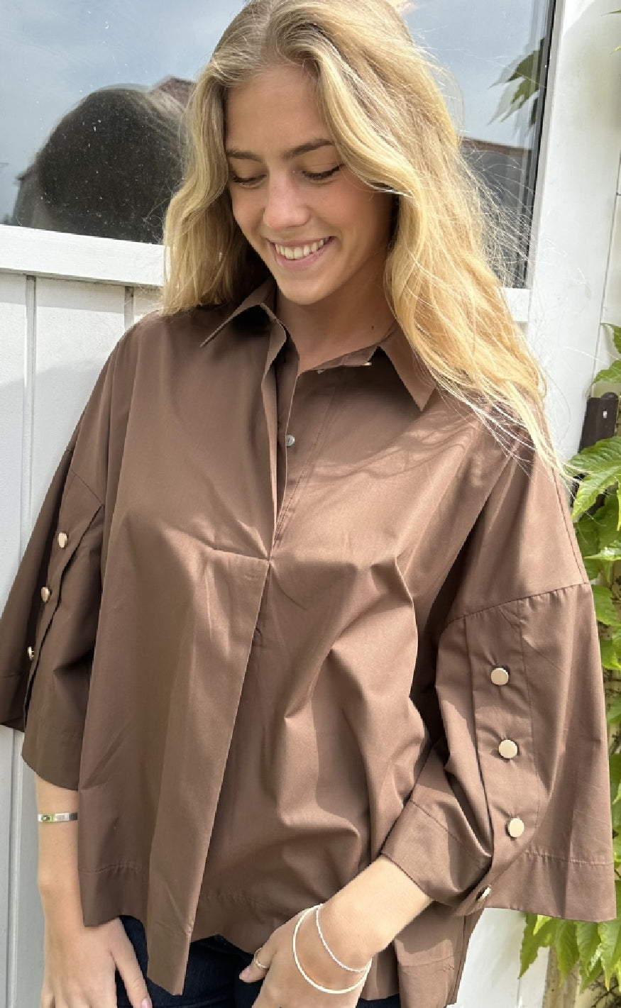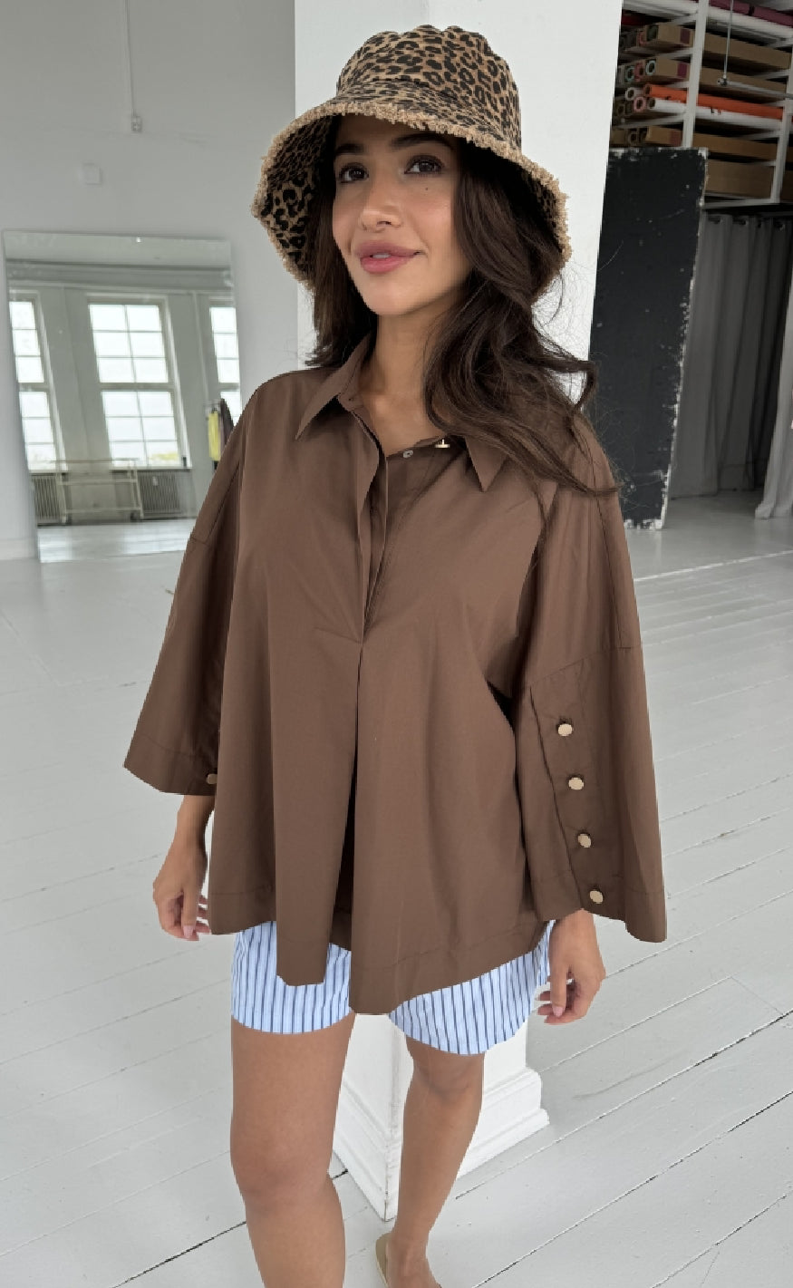 Oversize skjorte fra Continue i brun.