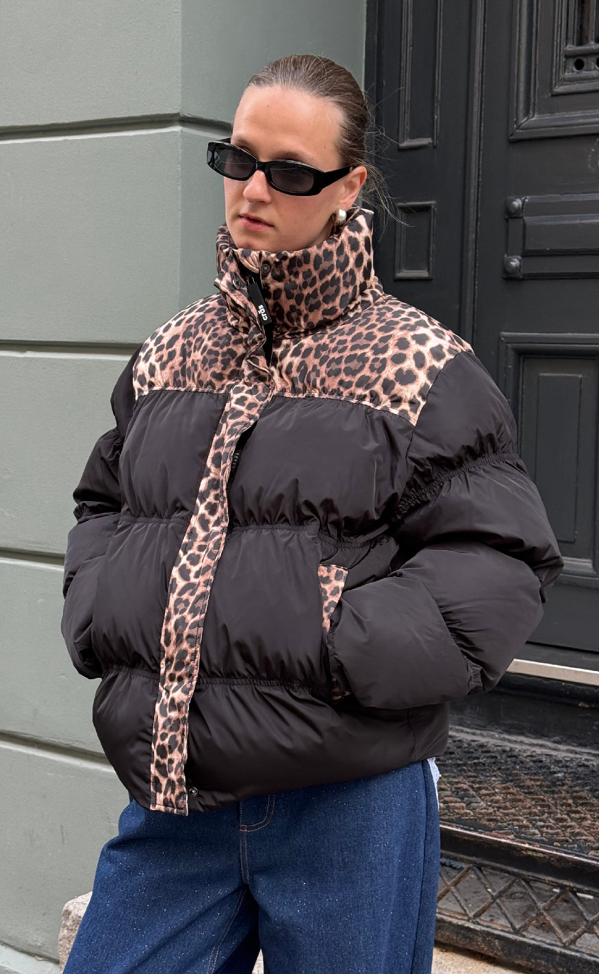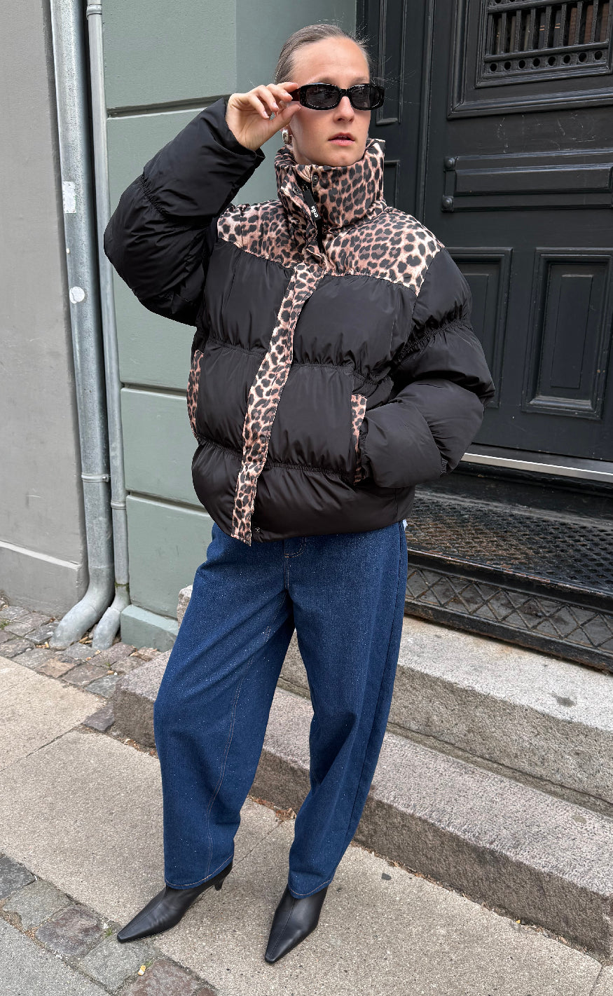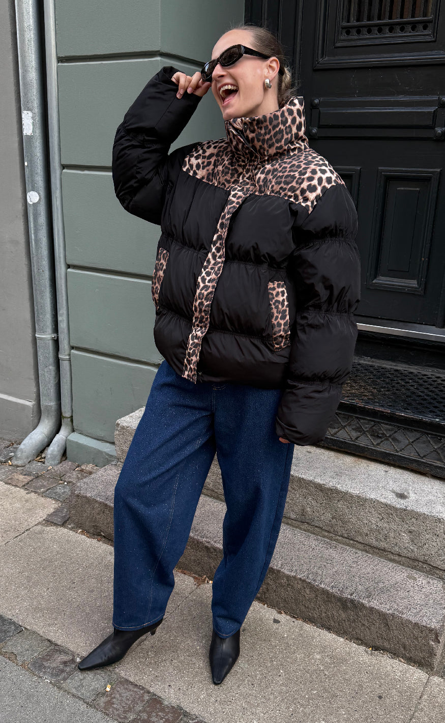 Dejlig varm puffer jakke fra Cras i sort med leoparddetaljer.