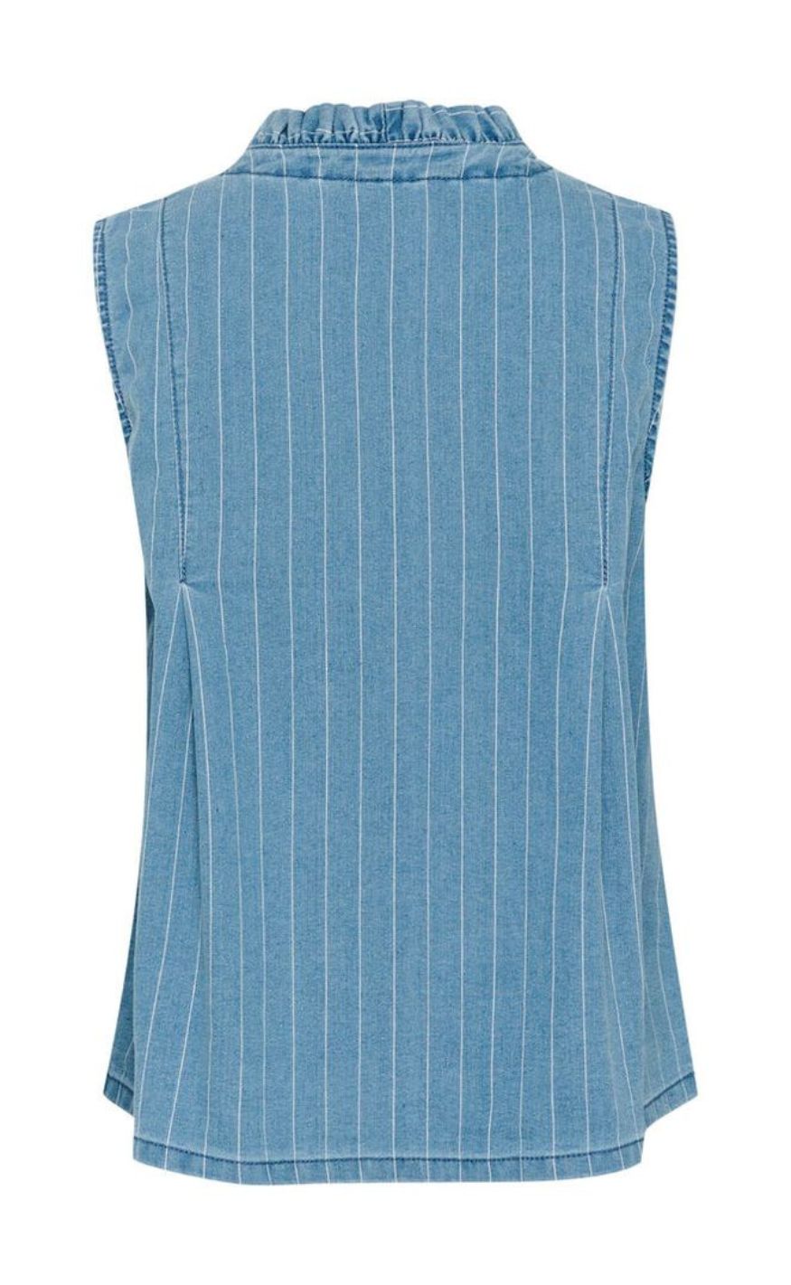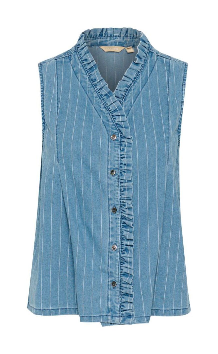 Denimtop fra Culture med striber, fine flæsedetaljer og knappelukning