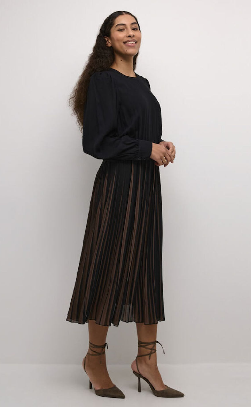 Flot kjole fra Culture i en midi længde i mørke nauncer.