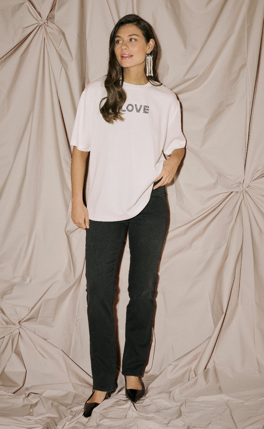 T-shirt fra Culture i beige med skriften "Love" stående på brystet.