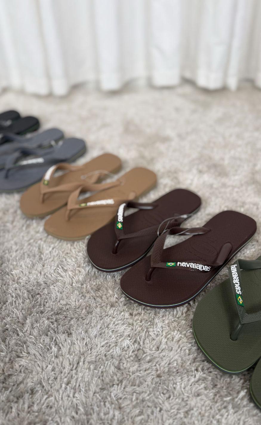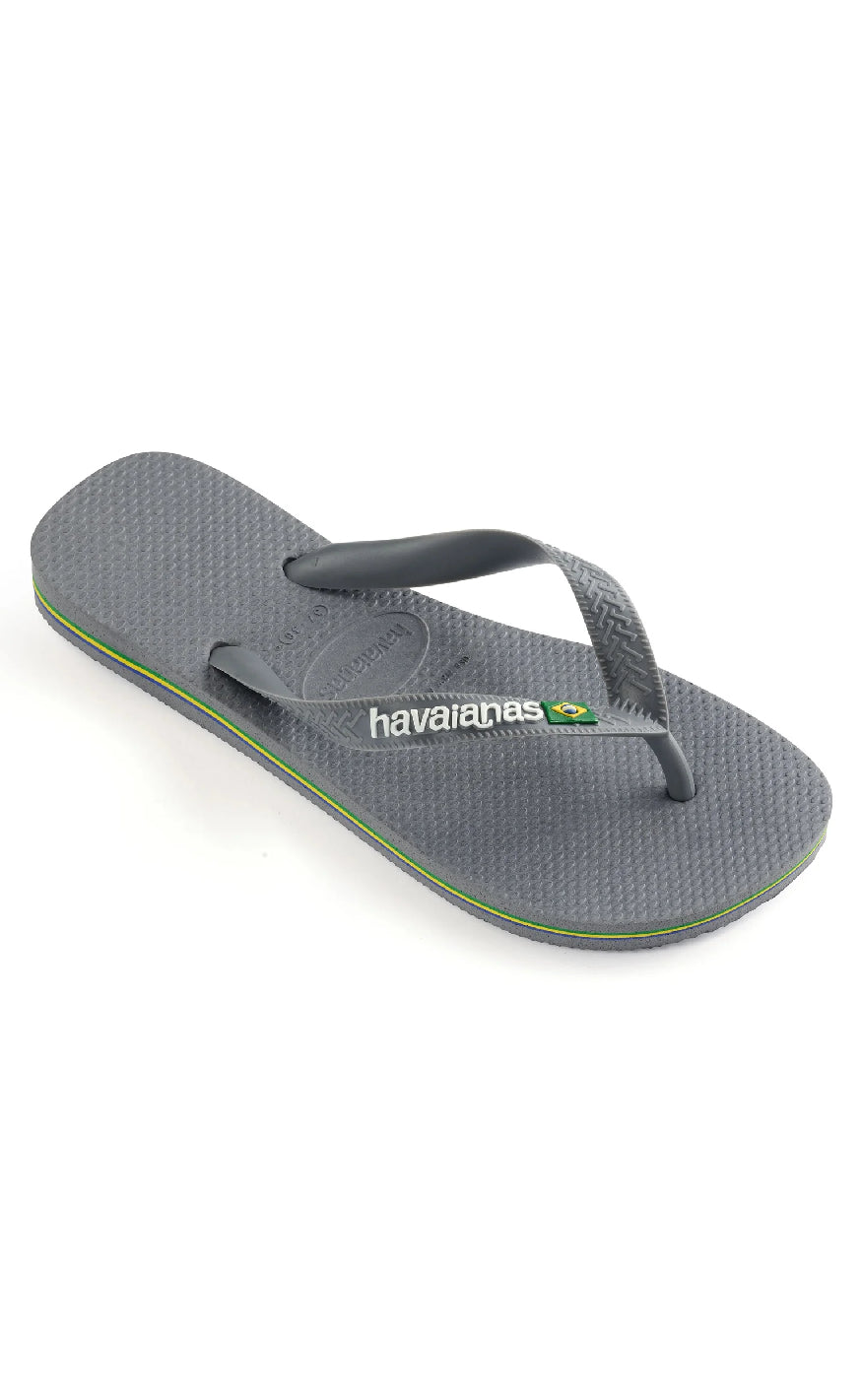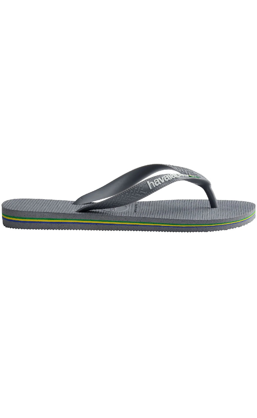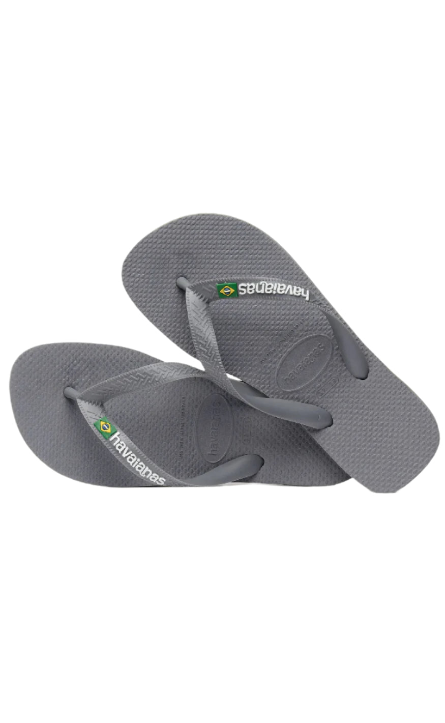 Den populære badesandal fra Havaianas i grå, med det brasilianske logo på remmen.