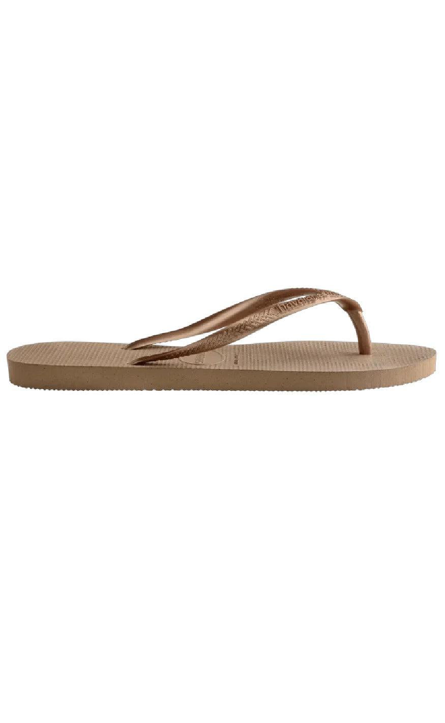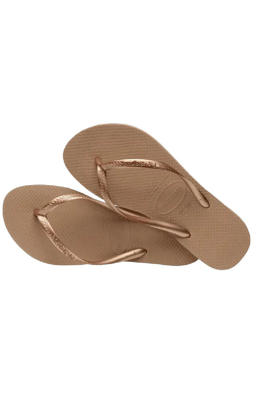 Den populære badesandal fra Havaianas i rose gold, med en smal pasform.