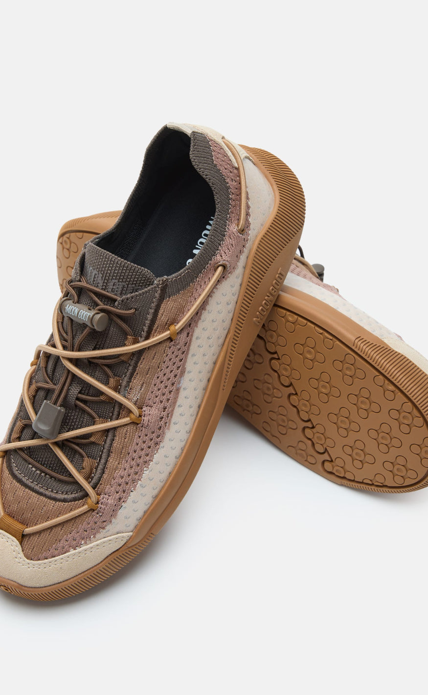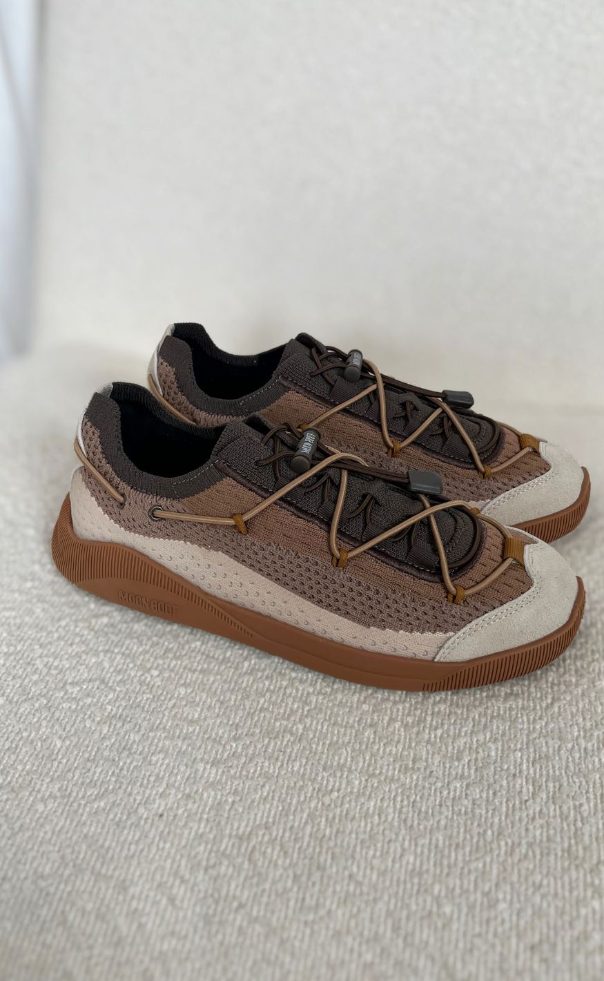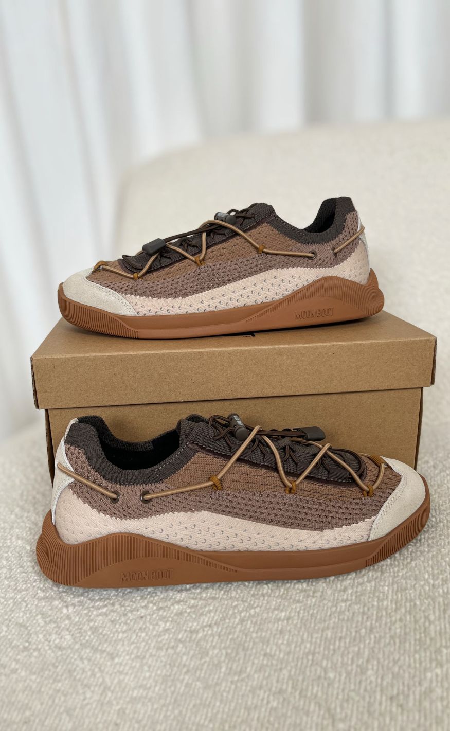 Moderne sneakers fra Moon Boot i en brun hvid nuance med sporty detaljer.