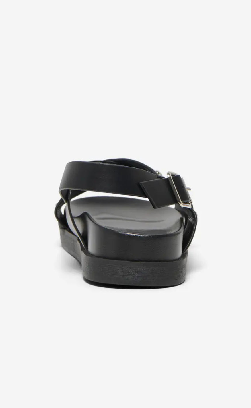 Moderne sandaler fra ONLY i sort med brede krydsremme dekoreret med små metalliske nitter.