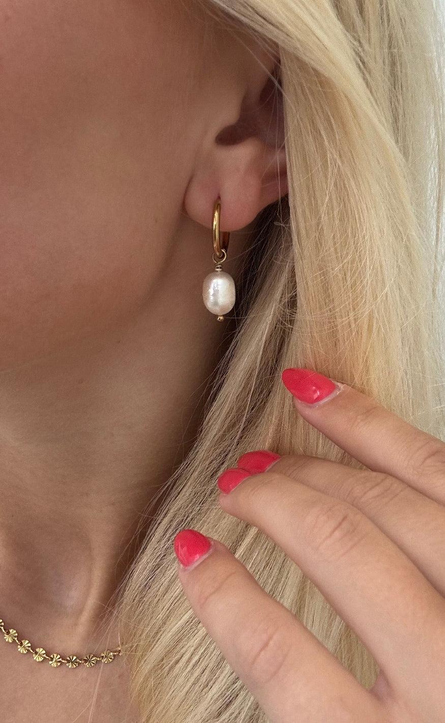 Smukke hoops fra Smykkeli Copenhagen i guld med en ferskvandsperle.