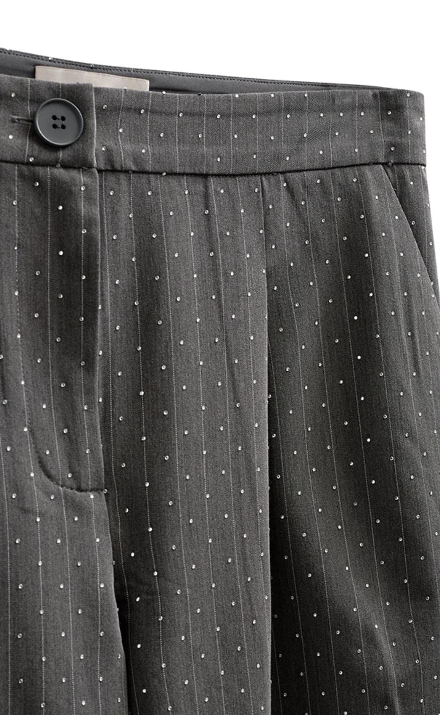 Freequent Bukser - Widy - Dark Grey Mel w Star Off-white
