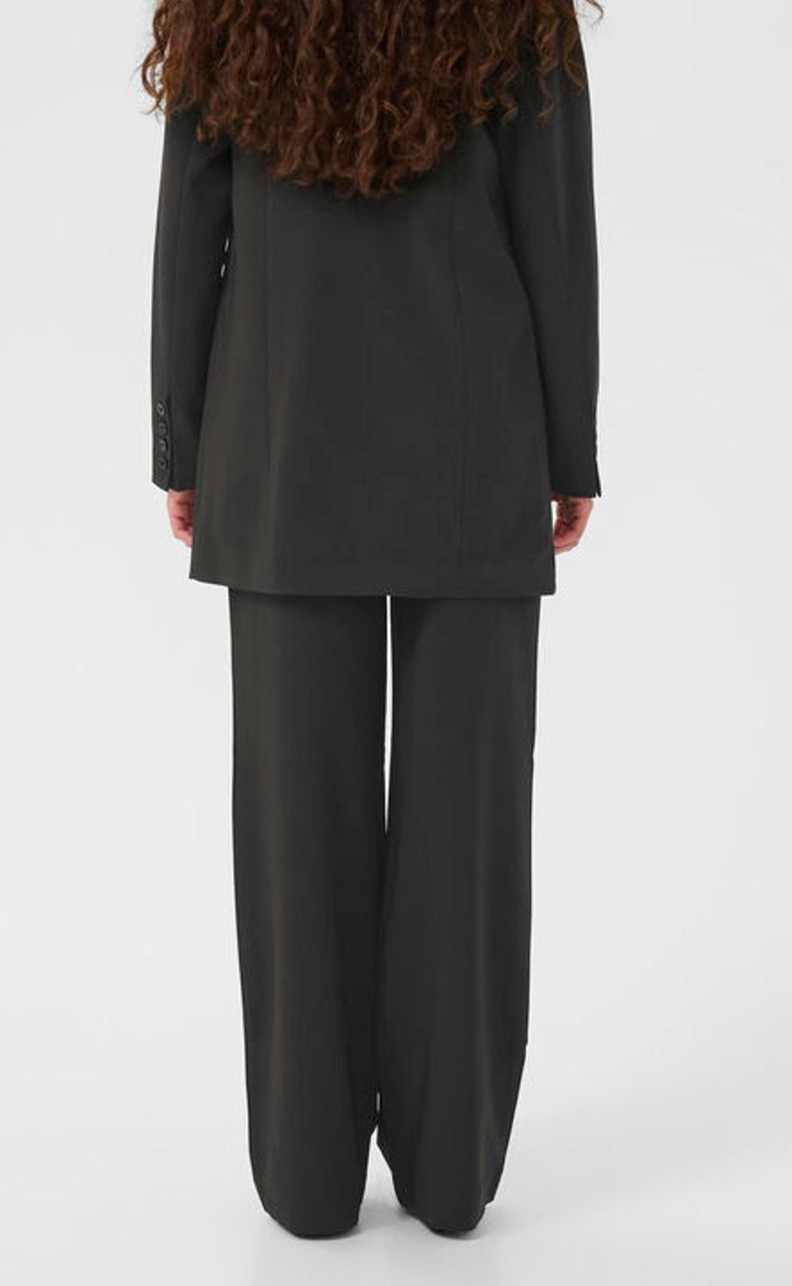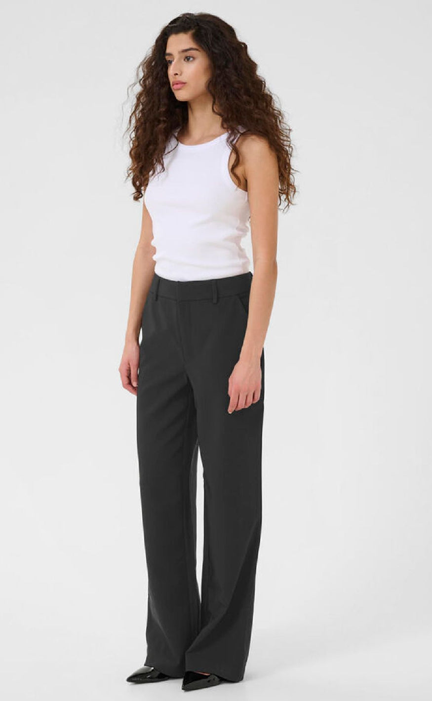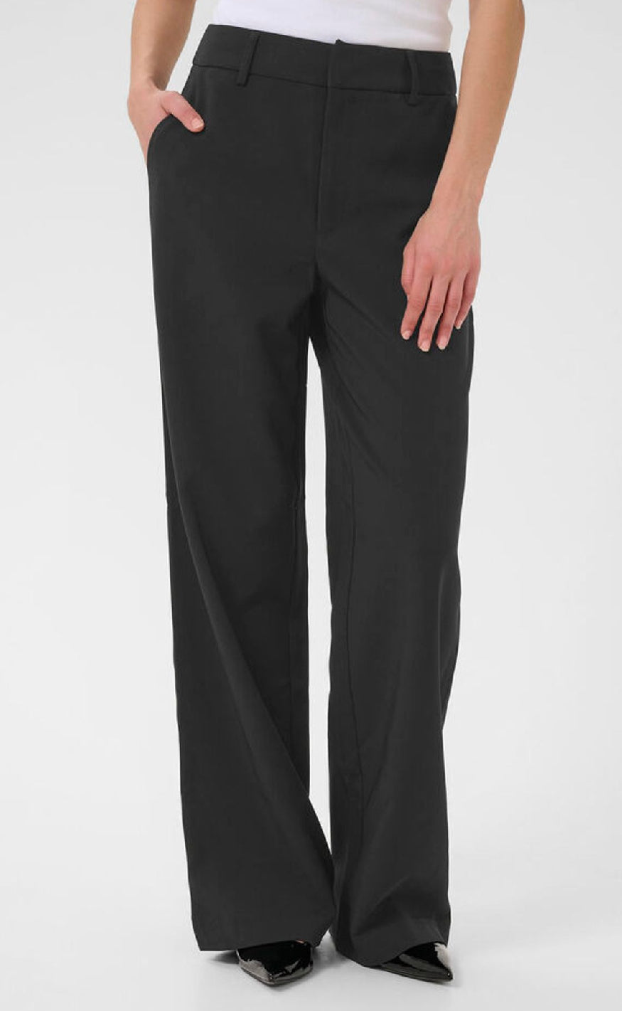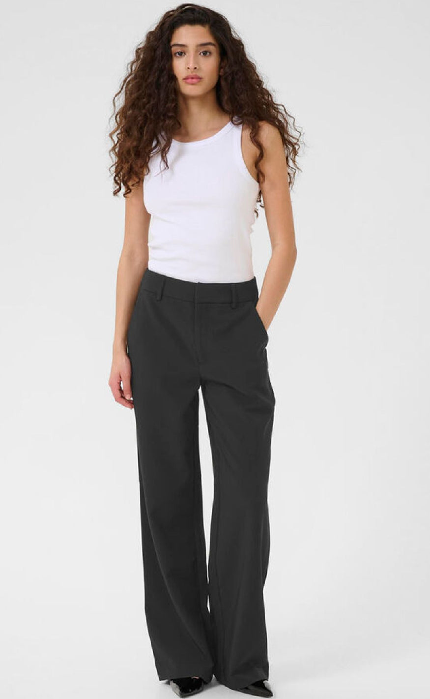 Klassiske sorte bukser fra Gestuz med lige ben og enkel pasform – perfekt til både kontor og hverdag.