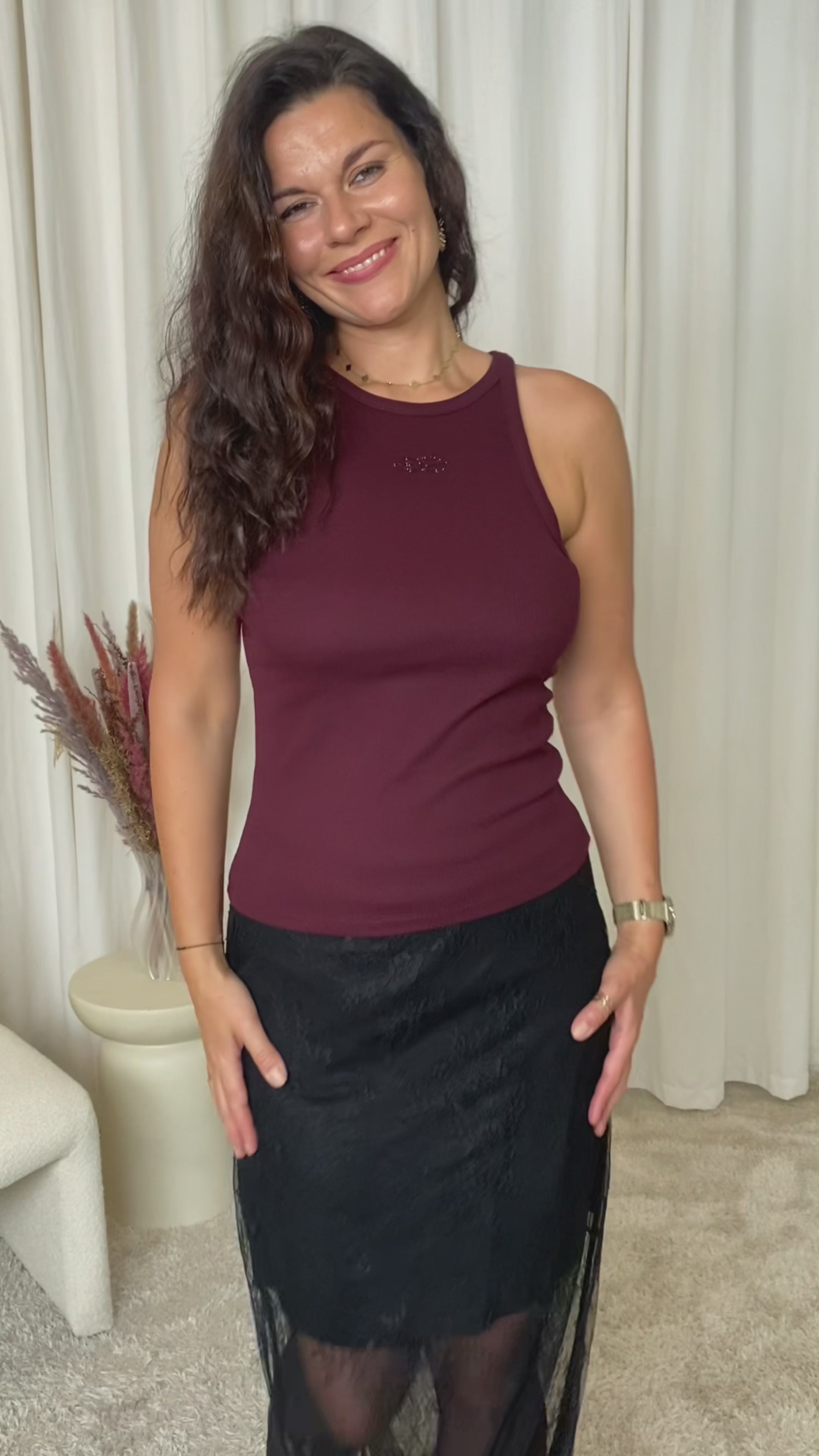 Toppen har et tætsiddende fit og kommer i en ribbet kvalitet.