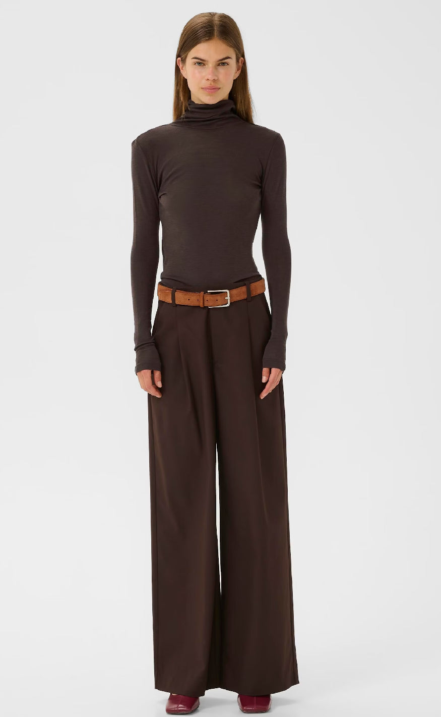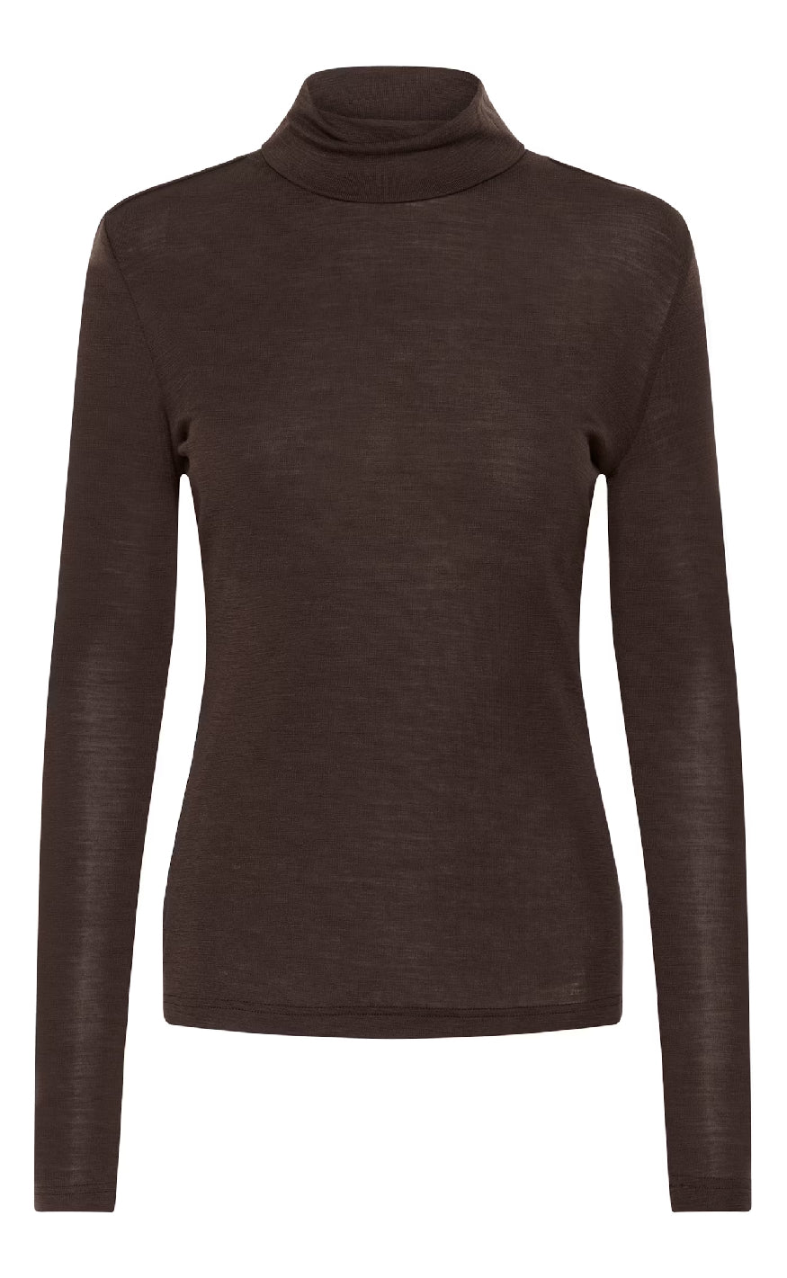 Basic, langærmet bluse fra Gestuz i brun med et tætsiddende fit.