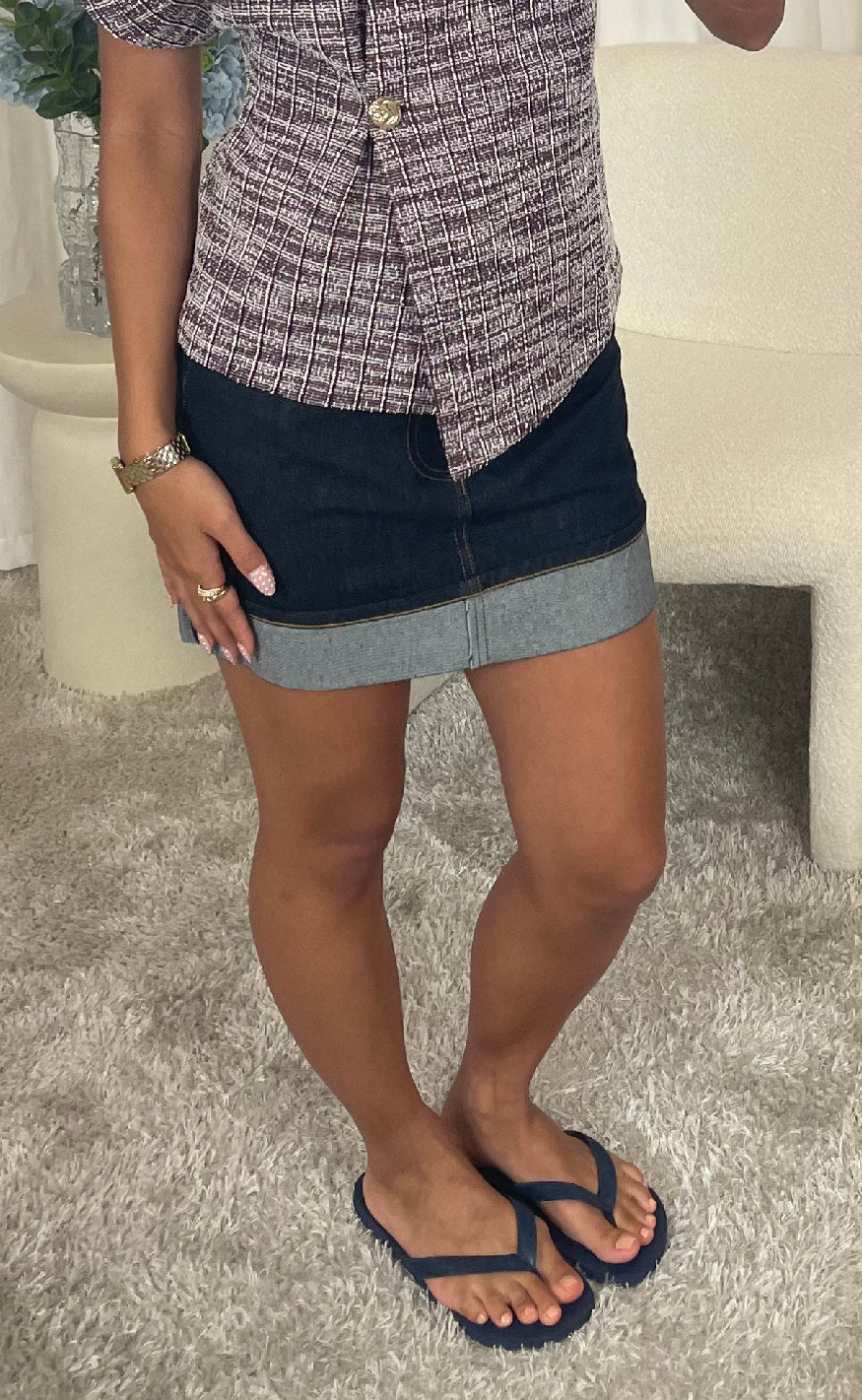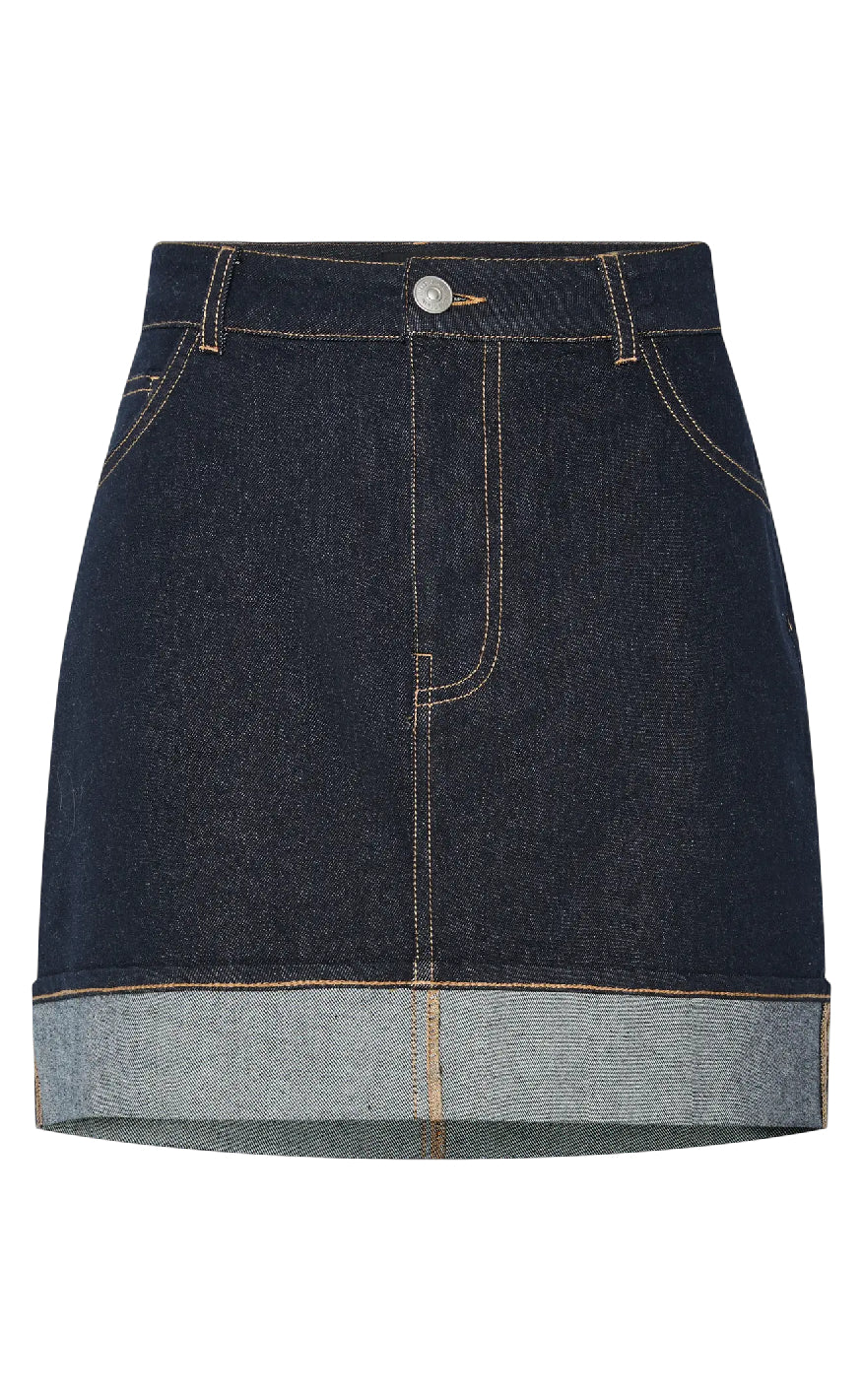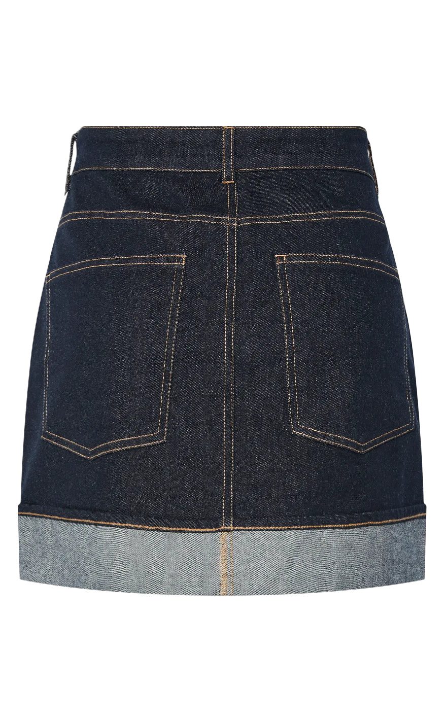 Mini nederdel fra Pieces i en mørkeblå denim kvalitet.