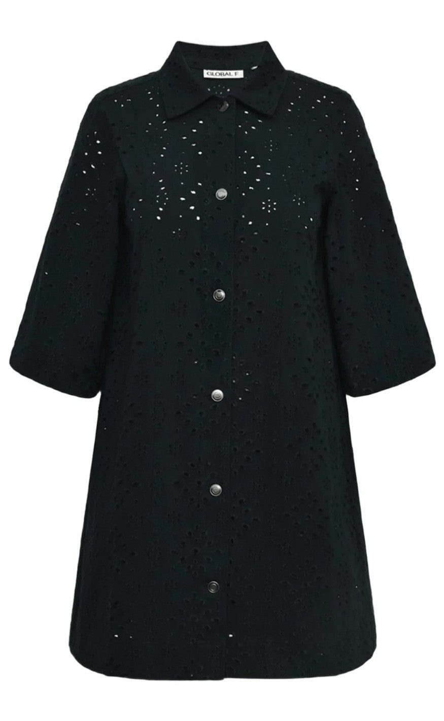 Kjolen har en fin krave, knapper og smukke detaljer.