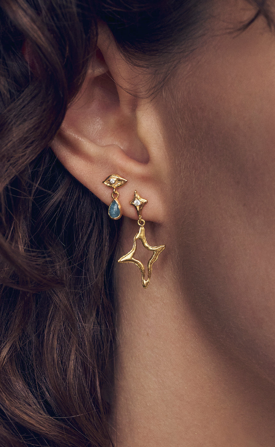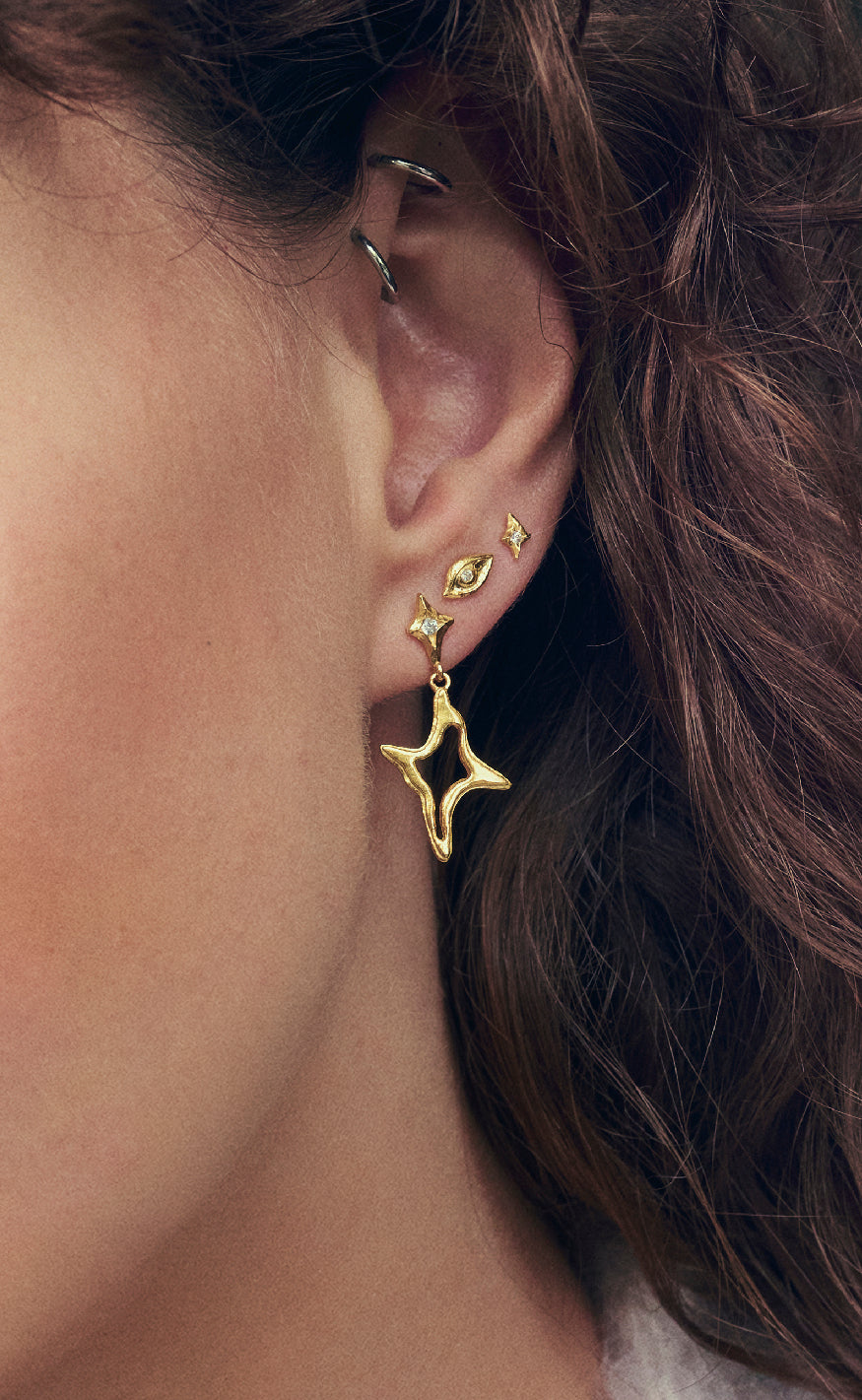 Yndige øreringe fra Maanesten i en guld nuance, formet som stjerner.