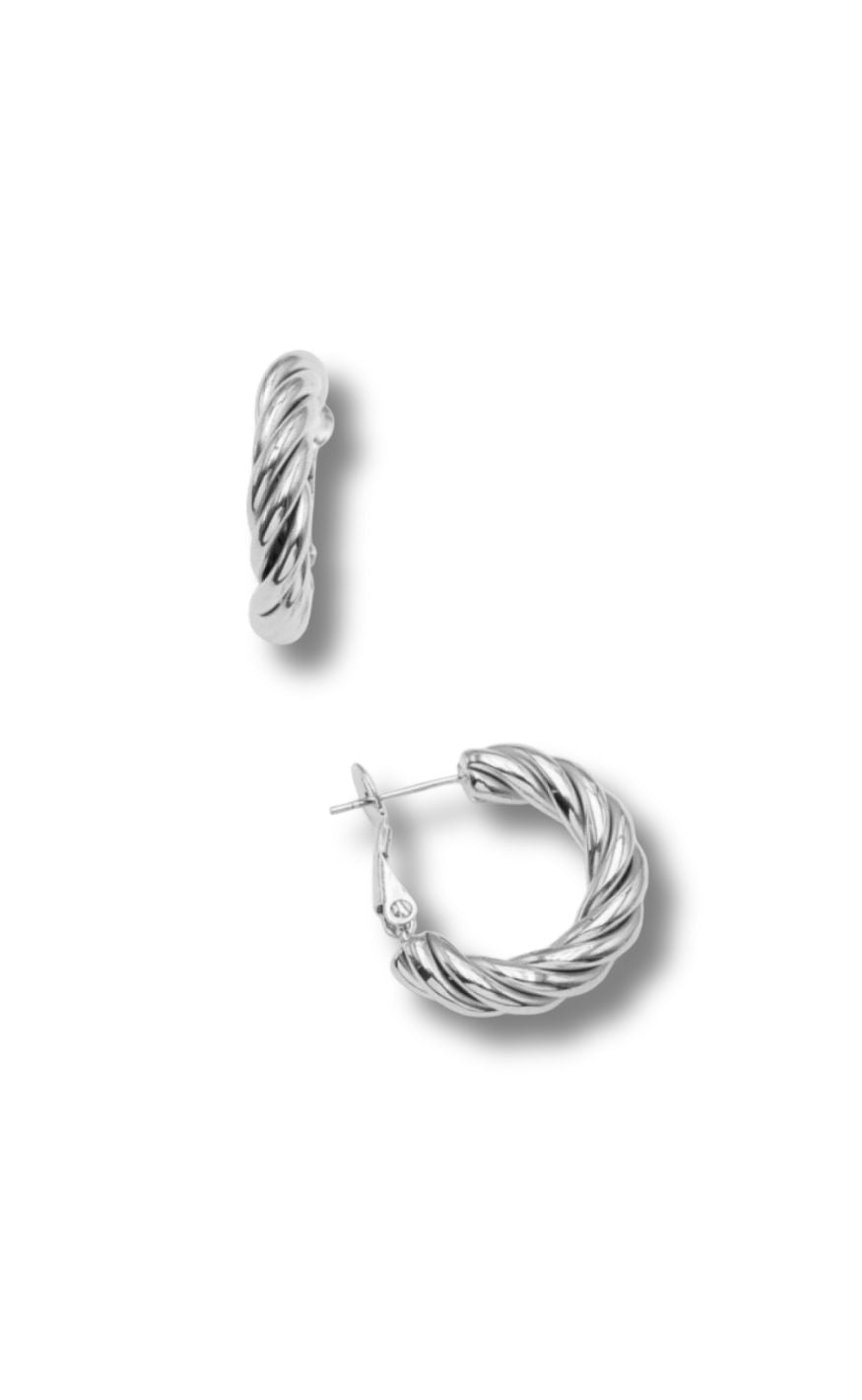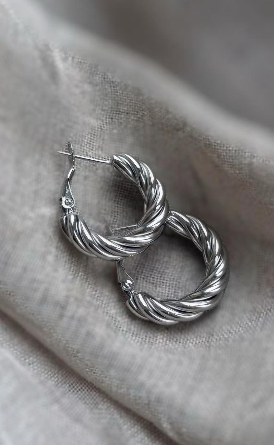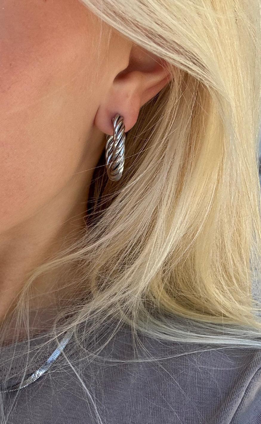 Smukke hoops fra Smykkeli Copenhagen i sølv med et twisted look.
