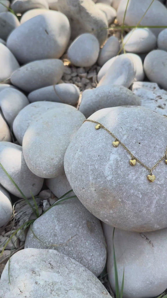 Fin halskæde med små hjerte-vedhæng.