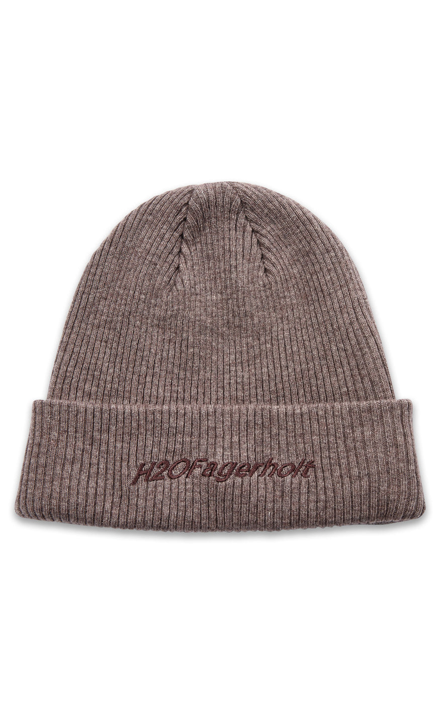 Strik hue fra H2O Fagerholt i brun, med logo fortil.