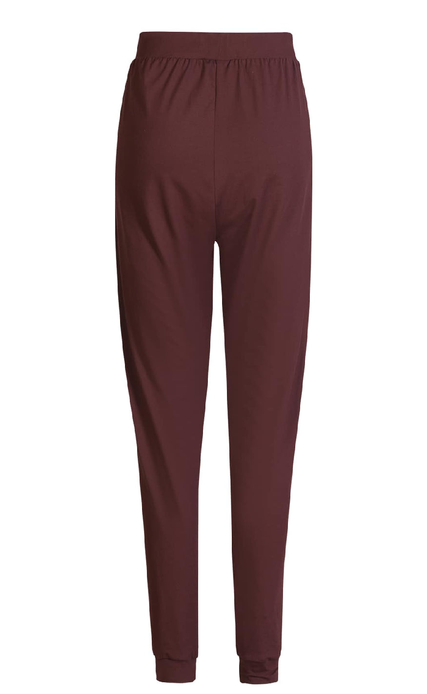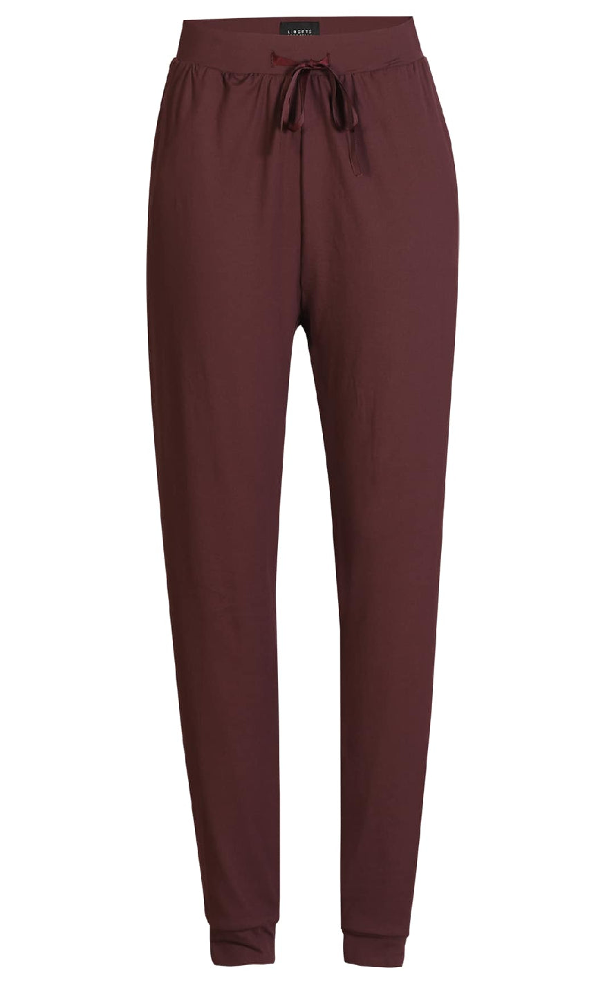 Afslappede bukser fra Liberté i en dyb bordeaux farve. Bukserne har elastik i taljen med bindebånd, hvilket giver en behagelig og fleksibel pasform.