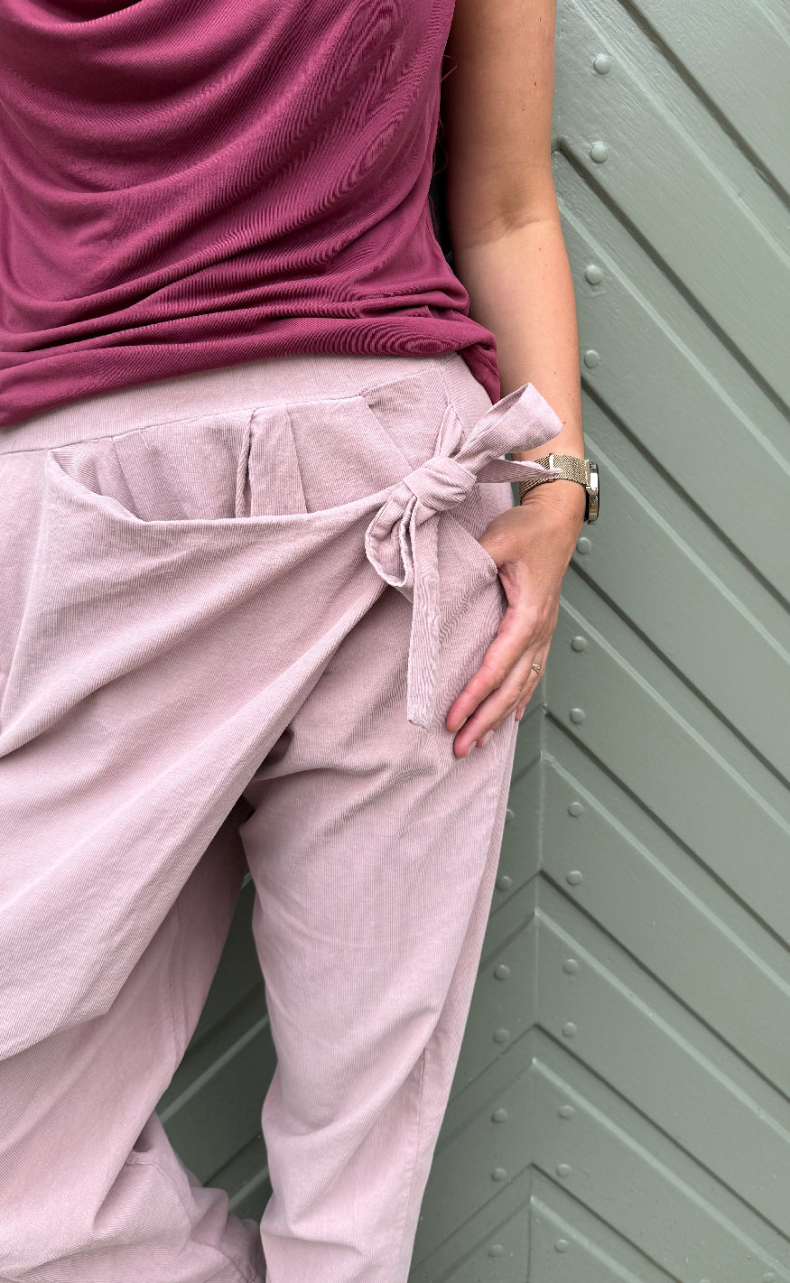 Pæne bukser i en løs pasform og bindebånd i siden.