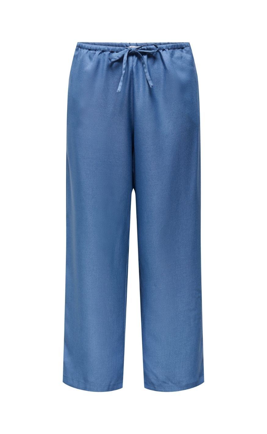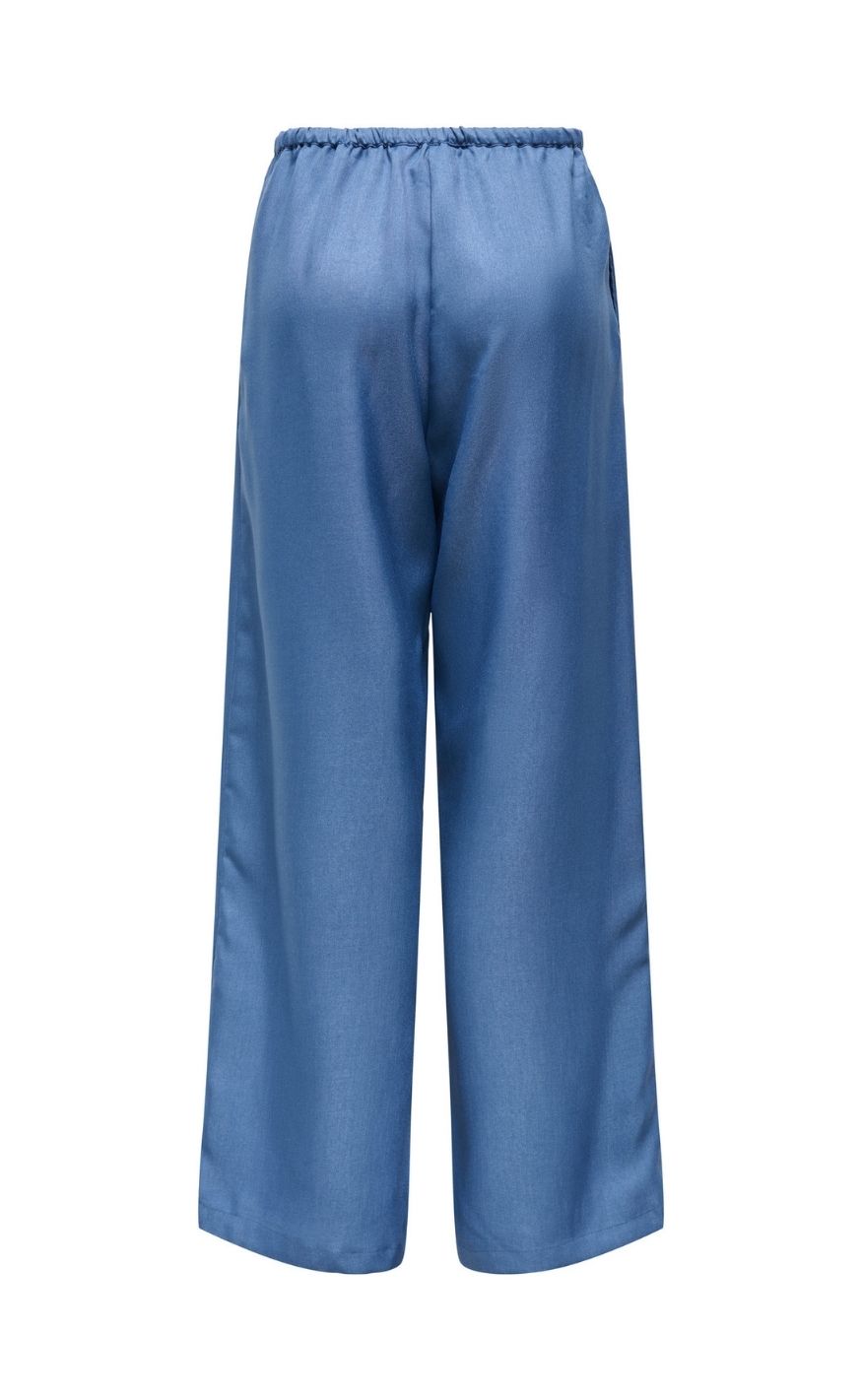 Smukke wide leg bukser fra ONLY i en dyb blå nuance. Bukserne har elastisk linning med justerbar snøre, og er det perfekte miks af komfort og stil.