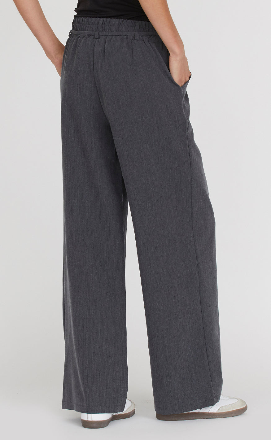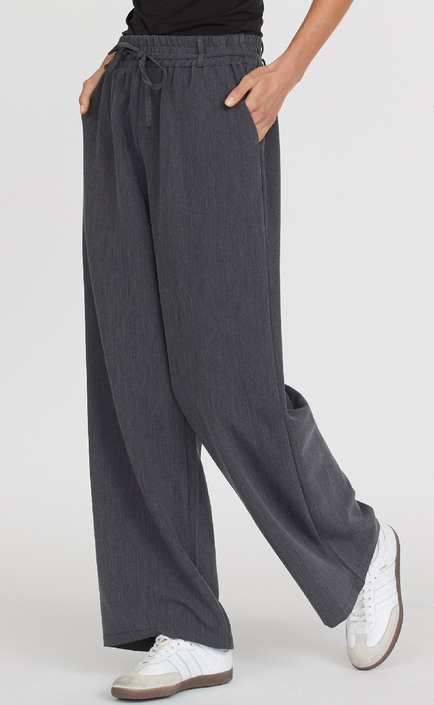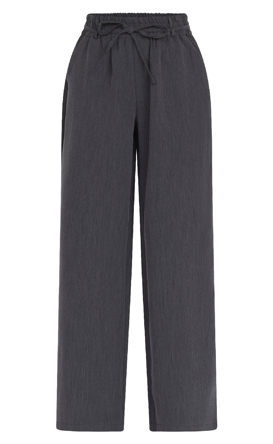 Grå bukser fra Sisters Point med bred benvidde og afslappet pasform, designet med elastisk talje og bindebånd for komfort og fleksibilitet.